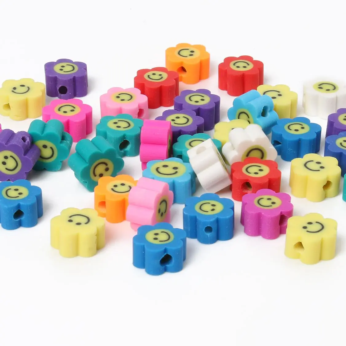 Бусины из полимерной глины для изготовления ювелирных изделий сделай сам, россыпью разделители подсолнуха, смайлика, аксессуары для ожерелья, браслета, 50 штук, разные цвета