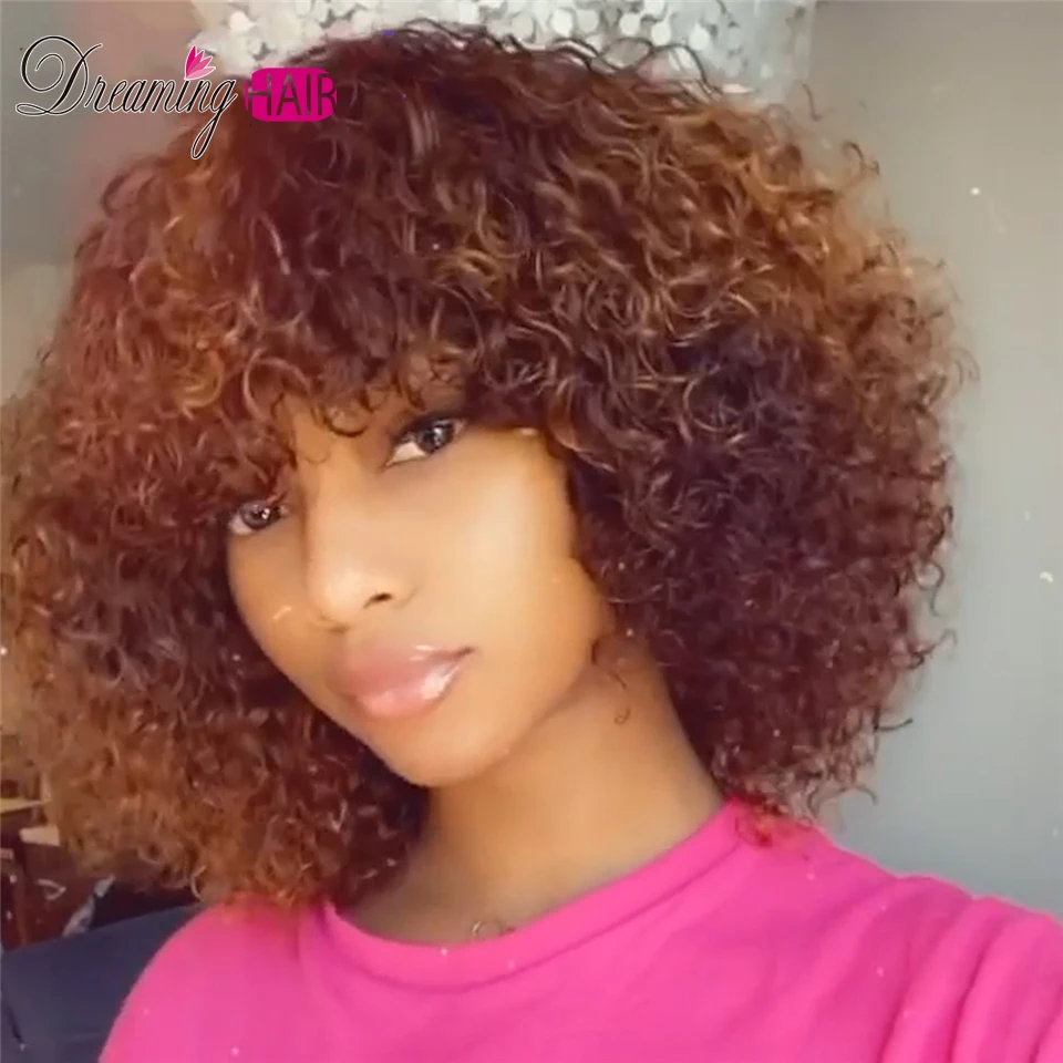Парики без шнурка, машинное изготовление, Боб, для чернокожих женщин, медовый блонд, Омбре, короткие человеческие волосы, Боб, вьющиеся парики с челкой, Реми