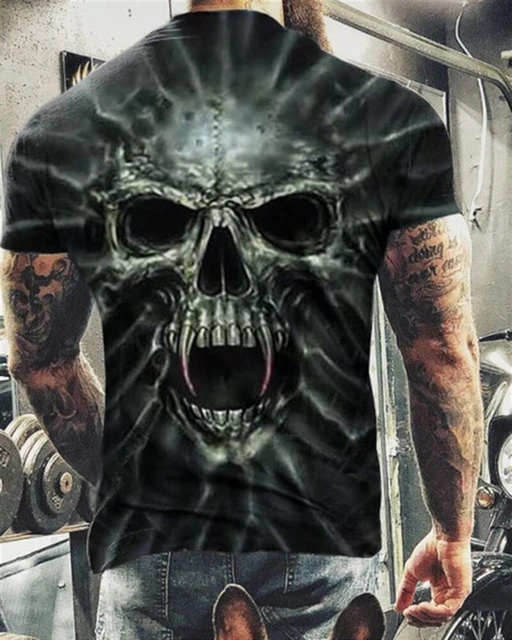 Футболка мужская оверсайз с коротким рукавом, Повседневная рубашка с принтом черепа, уличная одежда в стиле хип-хоп, топ с 3d принтом, лето 2021