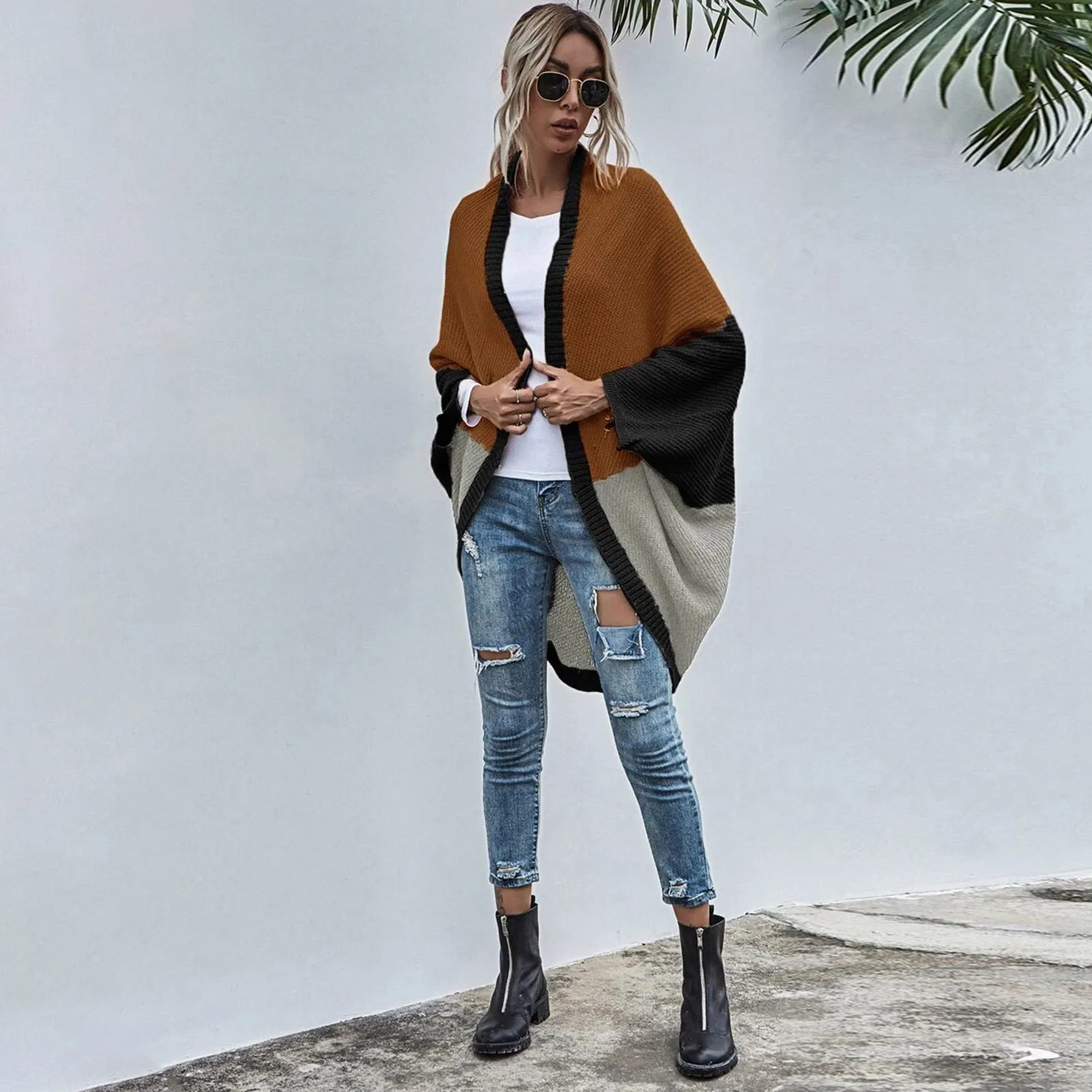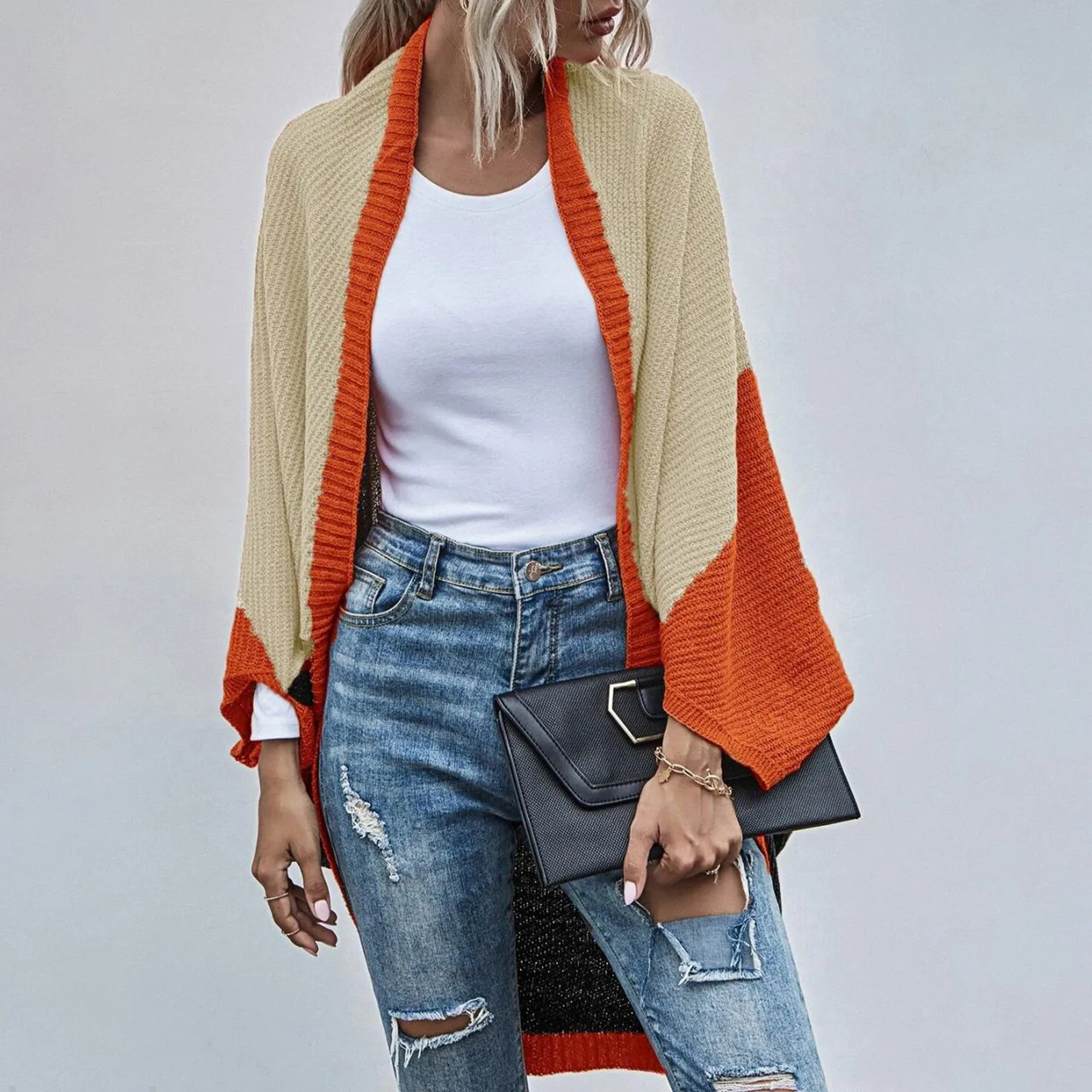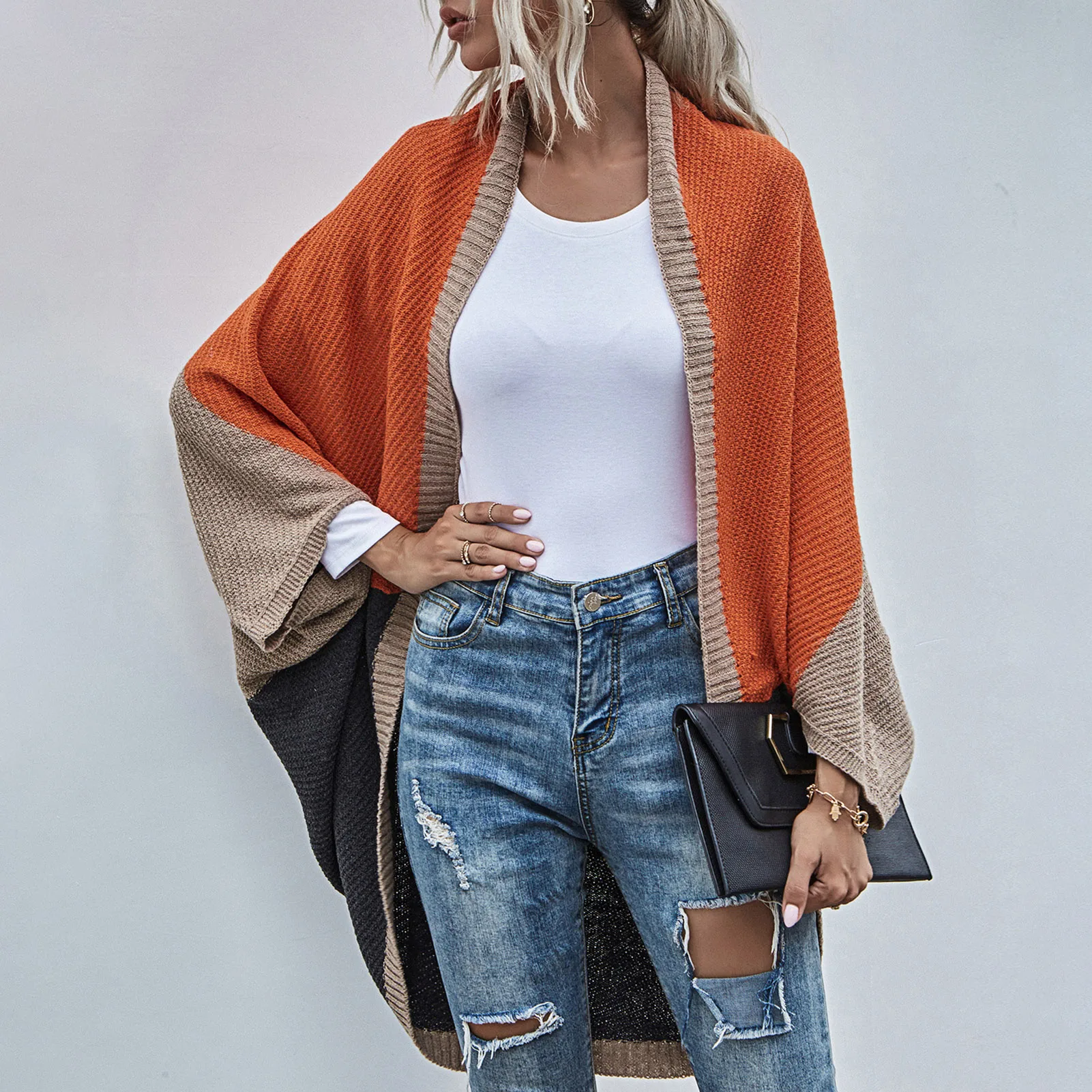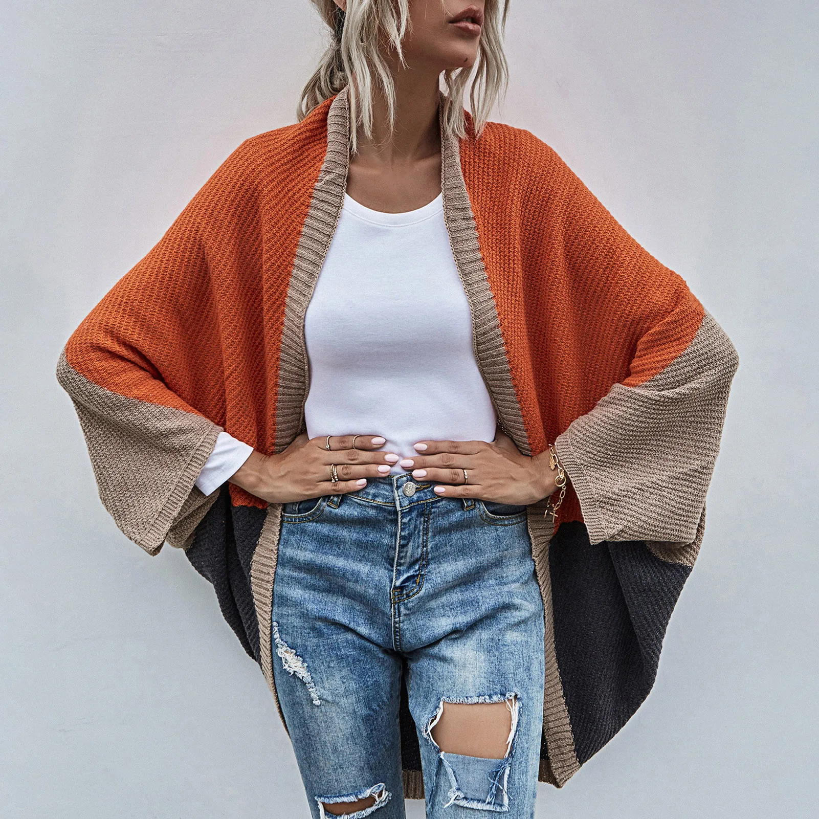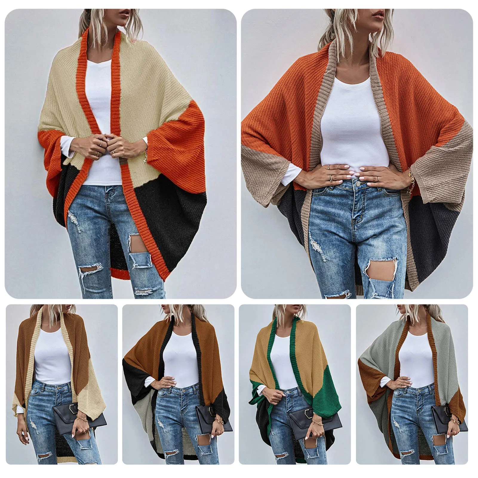 Женский кардиган оверсайз, вязаный свитер в уличном стиле, шаль, рукав летучая мышь, цветное кимоно, Осенний шикарный кардиган, свитер, Femme 2021