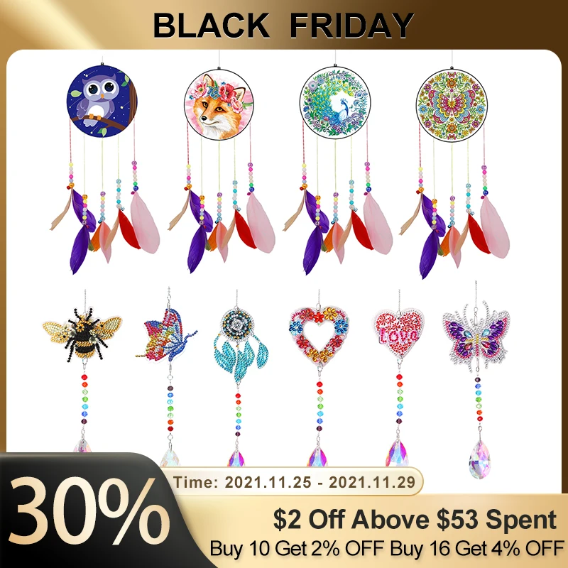 Алмазная картина 5D сделай сам, акриловая мозаика с подвеской в виде колокольчика ветра, ловцов солнца, комплект стразы, Висячие настенные украшения, домашний декор, подарки