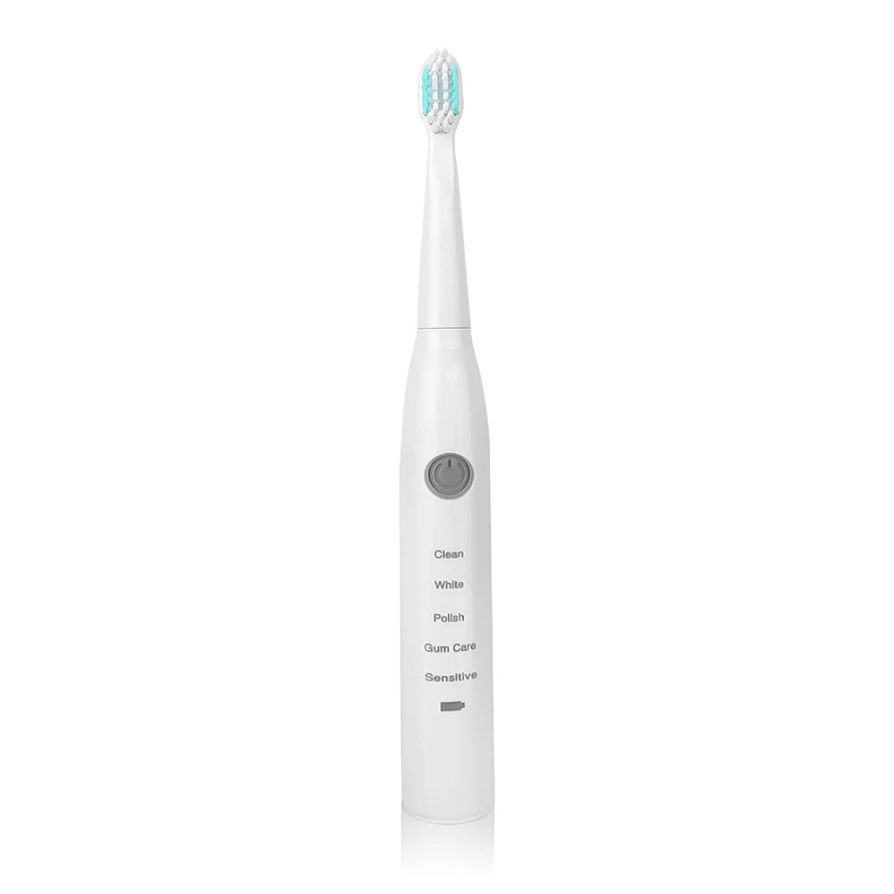 Количество: 1 x зубная щетка (основной корпус), 4 x головка щетки, 1 x Зарядное устройство USBТип: акустическая волнаТип изделия: перезаряжаемые зубные щеткиЦвета: белый/розовый/синийРежим: 5 режимов (белый/пурпурный/белый/gumcare/sensitve)Мощность: 31000 времени/мин ~ 41000 времени/минЗарядка: USB зарядка (красный светильник включен во время зарядки)Особенности 1: электрическая зубная щетка USBОсобенности 2: звуковая электрическая зубная щеткаПосылка: без розничной коробки