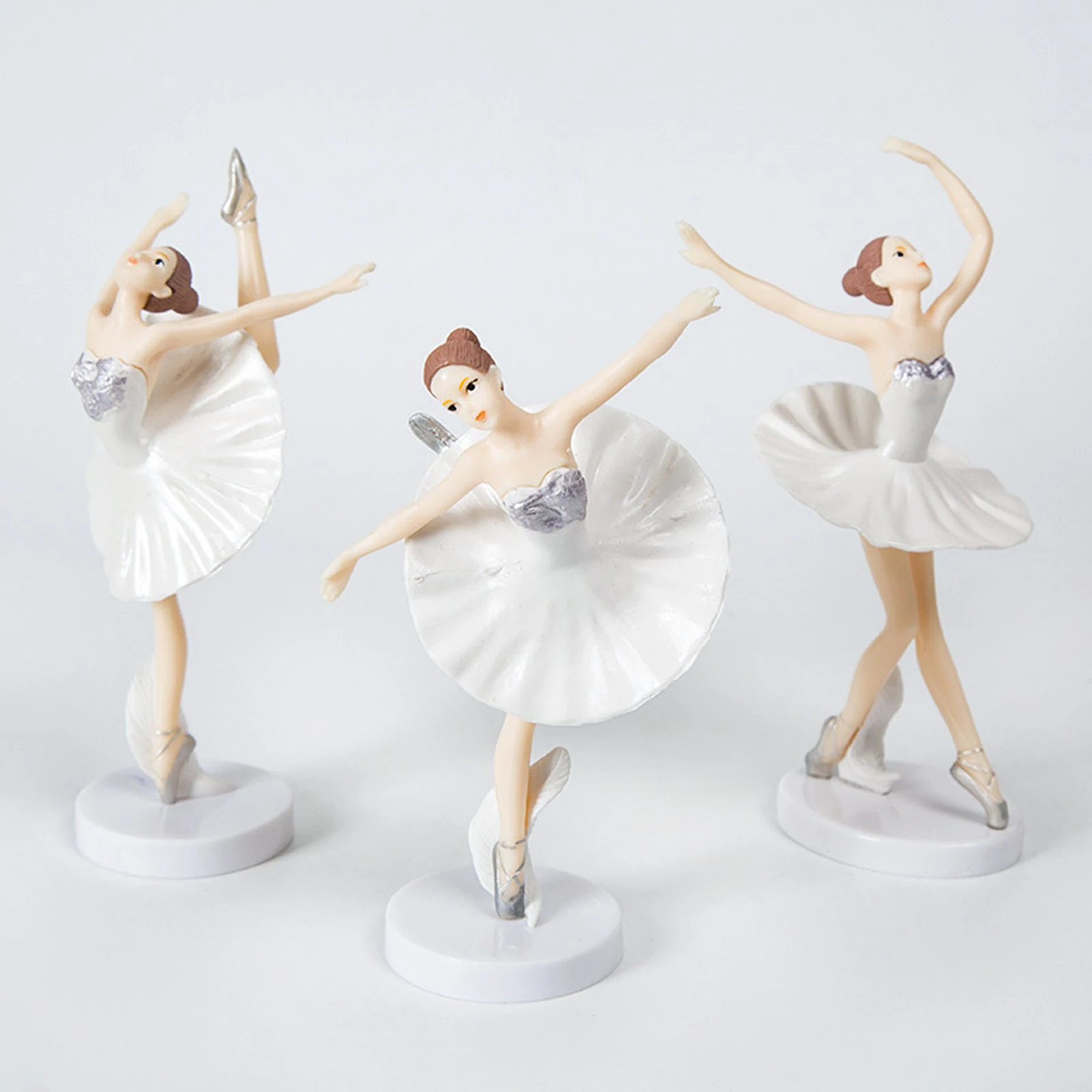 3 шт. Танцующая девочка на день рождения, торт, танцор, балетные фигурки, пластиковые с подставкой, белые, розовые балерины, десертные украшения для стола