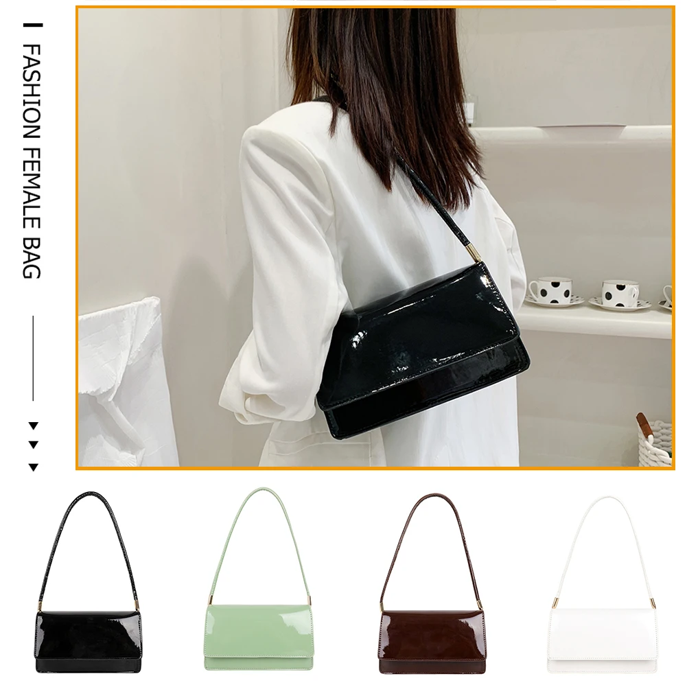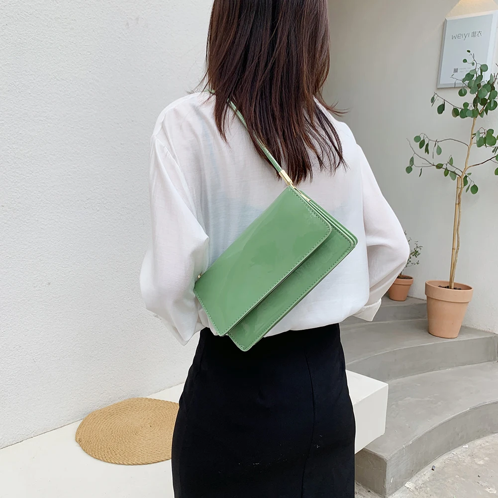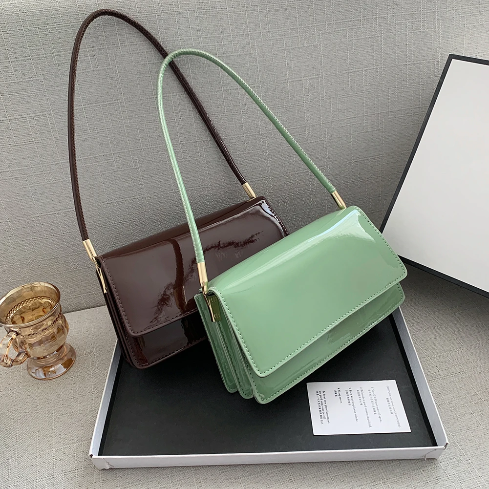 Модная женская сумка из лакированной искусственной кожи, однотонная сумка на плечо, повседневная женская маленькая сумочка с клапаном, сумки