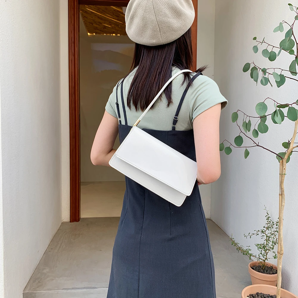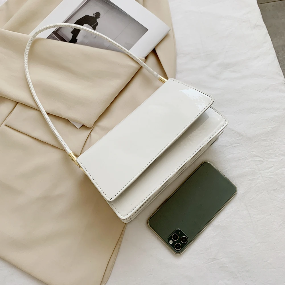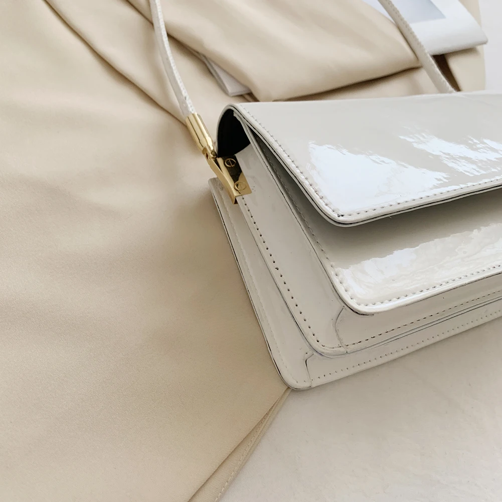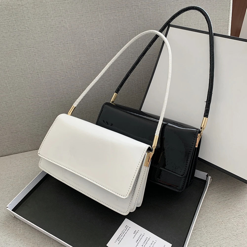 Модная женская сумка из лакированной искусственной кожи, однотонная сумка на плечо, повседневная женская маленькая сумочка с клапаном, сумки