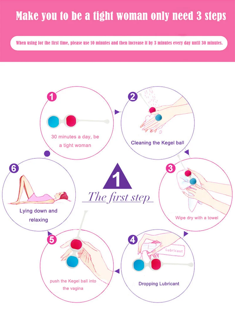 Добавьте смазку к шарику Кегеля.Откройте ноги, расслабьте влагалище, медленно вдавите мяч во влагалище.После этого вы можете сделать некоторые упражнения, такие как ходьба, плавание, работа дома, металлический шар будет сталкиваться с внутренней поверхностью во время движения.Очистите его до и после использования с мылом и теплой водой, затем дайте высохнуть естественным образом на воздухе.Сначала вы можете начать с маленького мяча, затем среднего и большого мяча.Рекомендуется использовать его около получаса в начале каждого дня, после одного месяца, вы можете изменить, чтобы использовать больший шар.