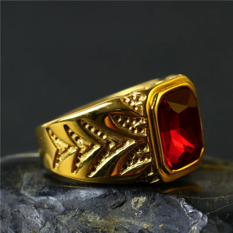 Позолоченные Роскошные красные циркониевые кольца, Классические трендовые мужские повседневные украшения для вечеринок в стиле панк