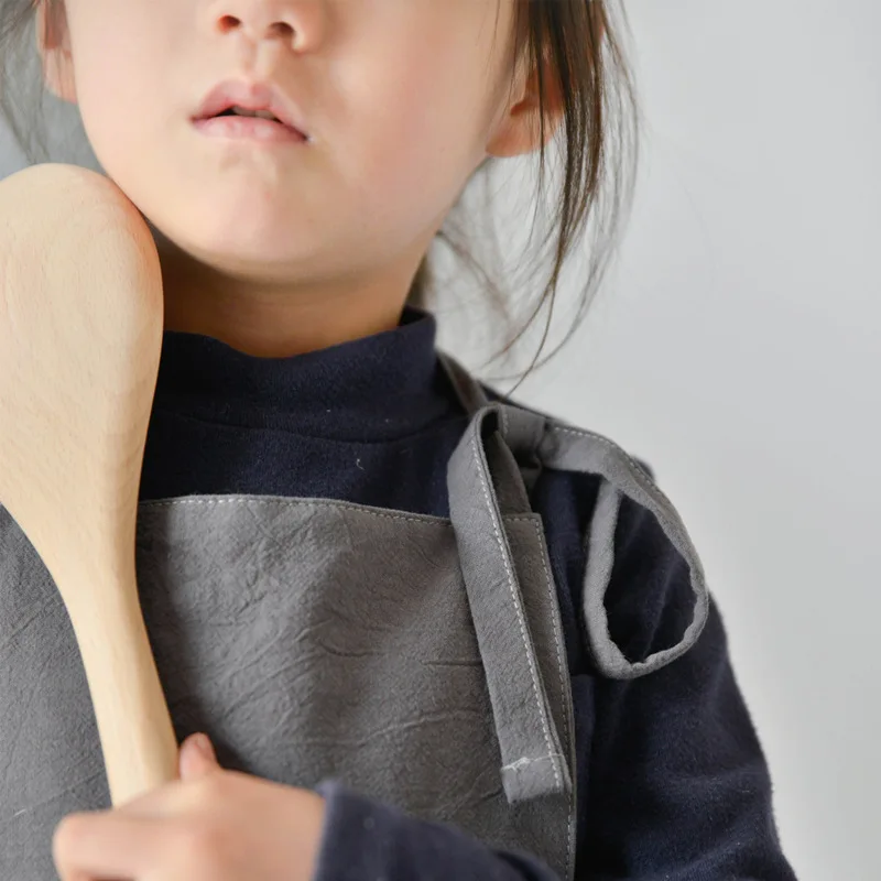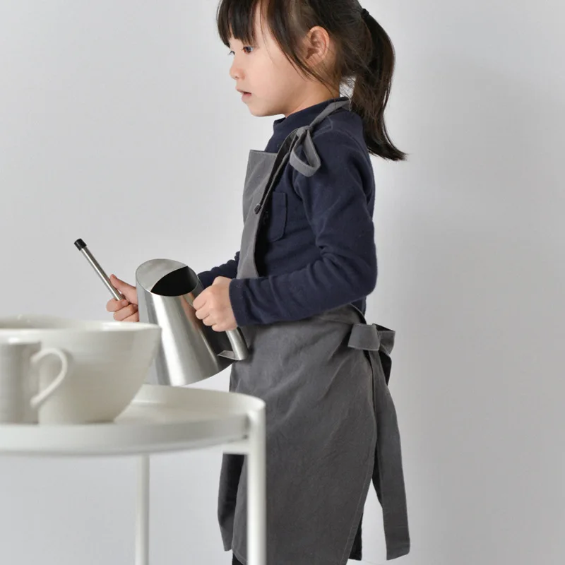 Однотонный фартук для родителей и детей в японском стиле простой детский хлопковый комбинезон для выпечки с художественной росписью