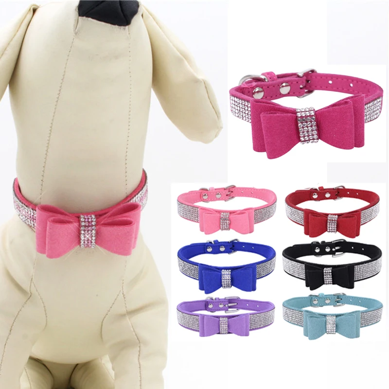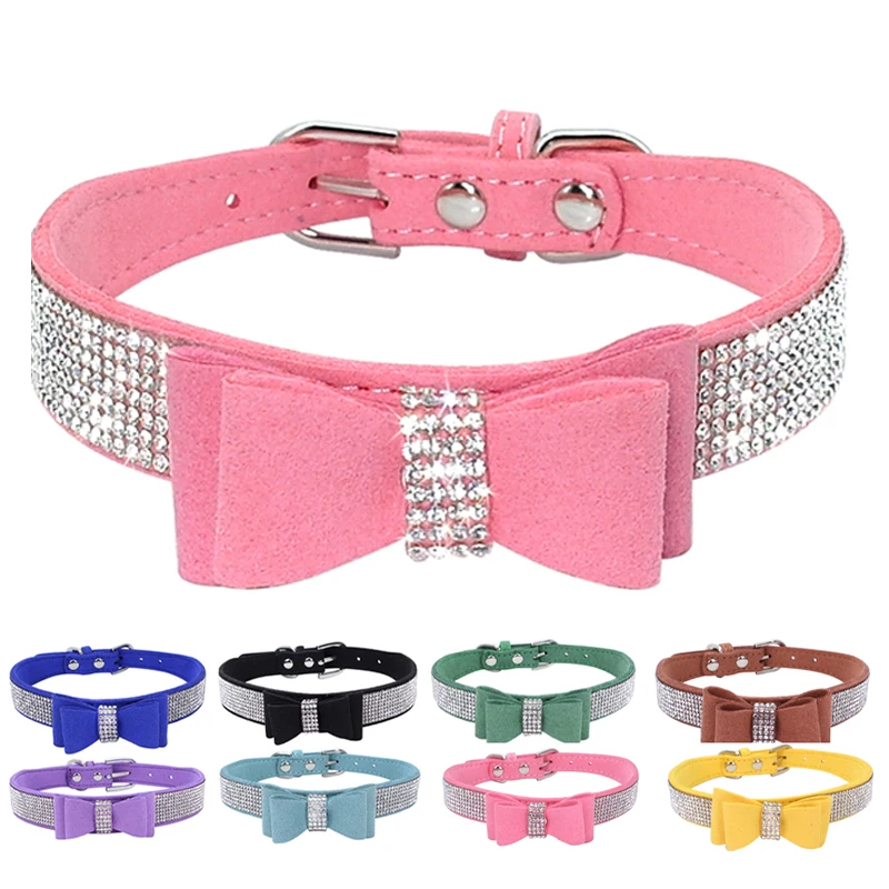 Блестящий Кристальный ошейник для собак, кожаный ошейник для малень...
