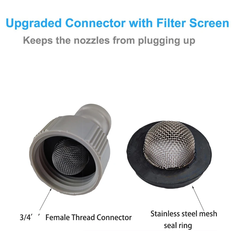 Материал насадки: корпус из латуни, отверстие из нержавеющей сталиРабочее давление: 2-3 кг/см2 (28,5-42.6Psi)Размер шланга: 1/4 "O.DСоединитель водопроводной воды: 3/4 ''Женская резьбаДлина варианты: 6/9/12/15/18 метров