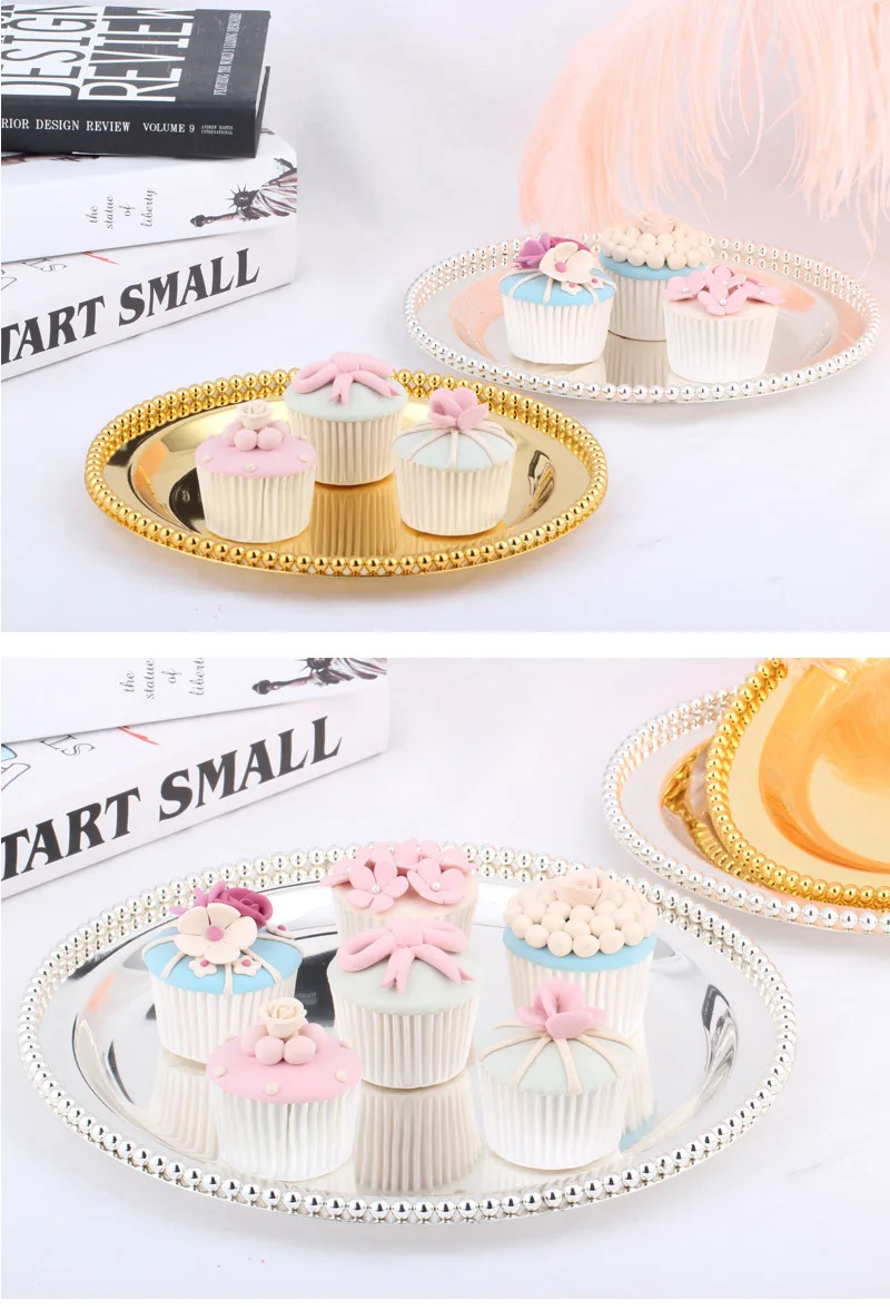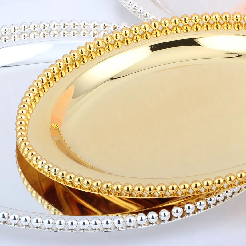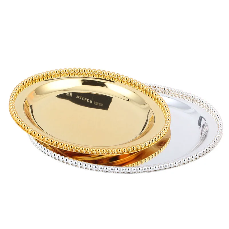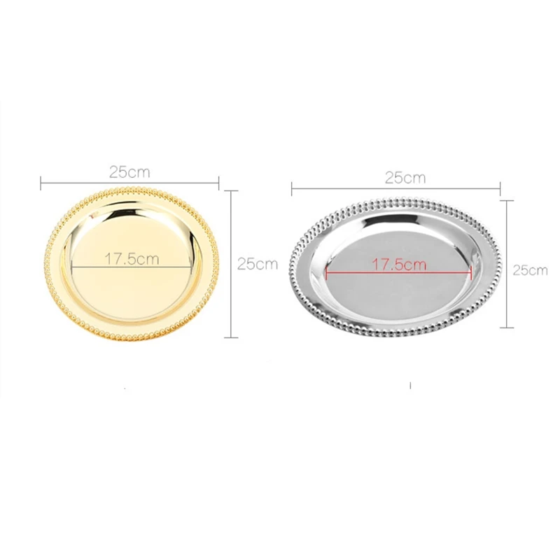 Роскошные серебряныеЗолотые тарелки для зарядного устройства, металлический лоток 25 см9,8 дюйма, круглые тарелки с гайкойСладкиетарелки для торта для дома, Рождественское украшение