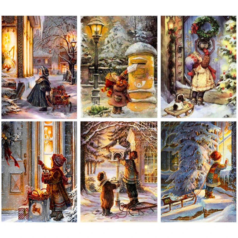 Набор для алмазной вышивки сделай сам, картина по номерам, Зимняя Вышивка, Детская мозаика, хобби, вышивка крестиком, рождественский подарок