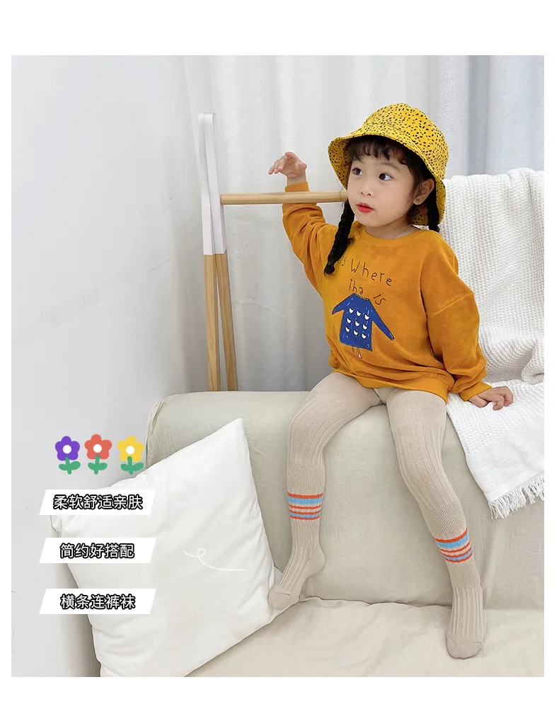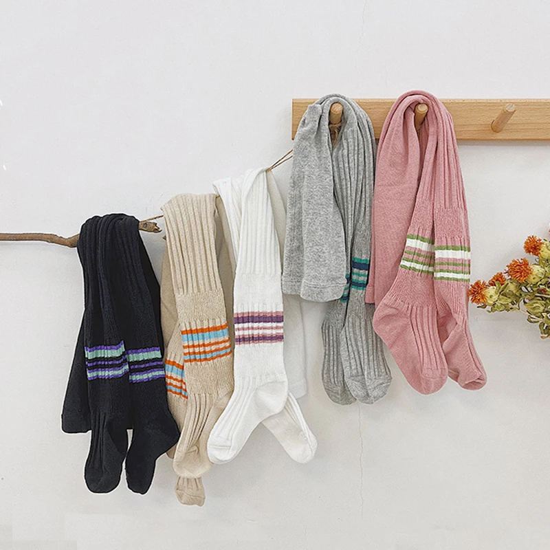 Колготки для девочек; Одежда в радужную полоску; Детские колготки; Хлопковые детские колготки; Детские чулки; Однотонные; Коллекция 2021 года; Сезон весна-осень
