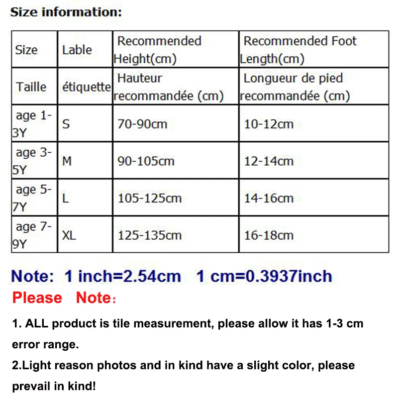 2. Пожалуйста, при покупке выбирайте размер в соответствии с таблицей размеров. Если вы не понимаете их, пожалуйста, свяжитесь с нами. Сообщите нам вес и рост ваших детей. Мы поможем вам сделать лучший выбор.