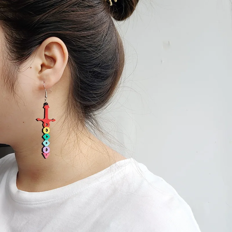 Новые модные ювелирные изделия, красочный меч, акриловые висячие серьги, радужные кости, меч ЛГБТ, настольные, ролевые игры, унисекс, Подвесные серьги