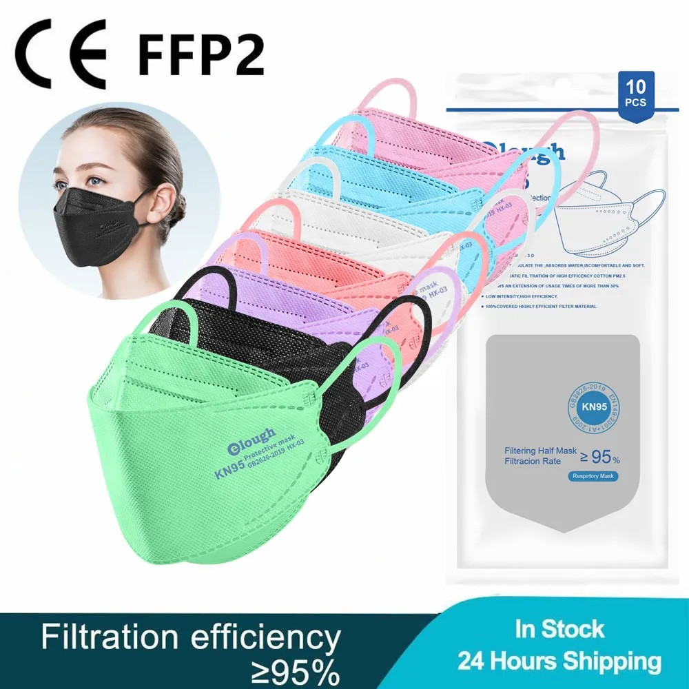 Elough Fish маска KN95, цвета масок FFP2 для взрослых, 4-слойная, г...