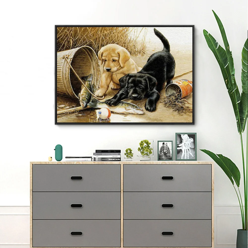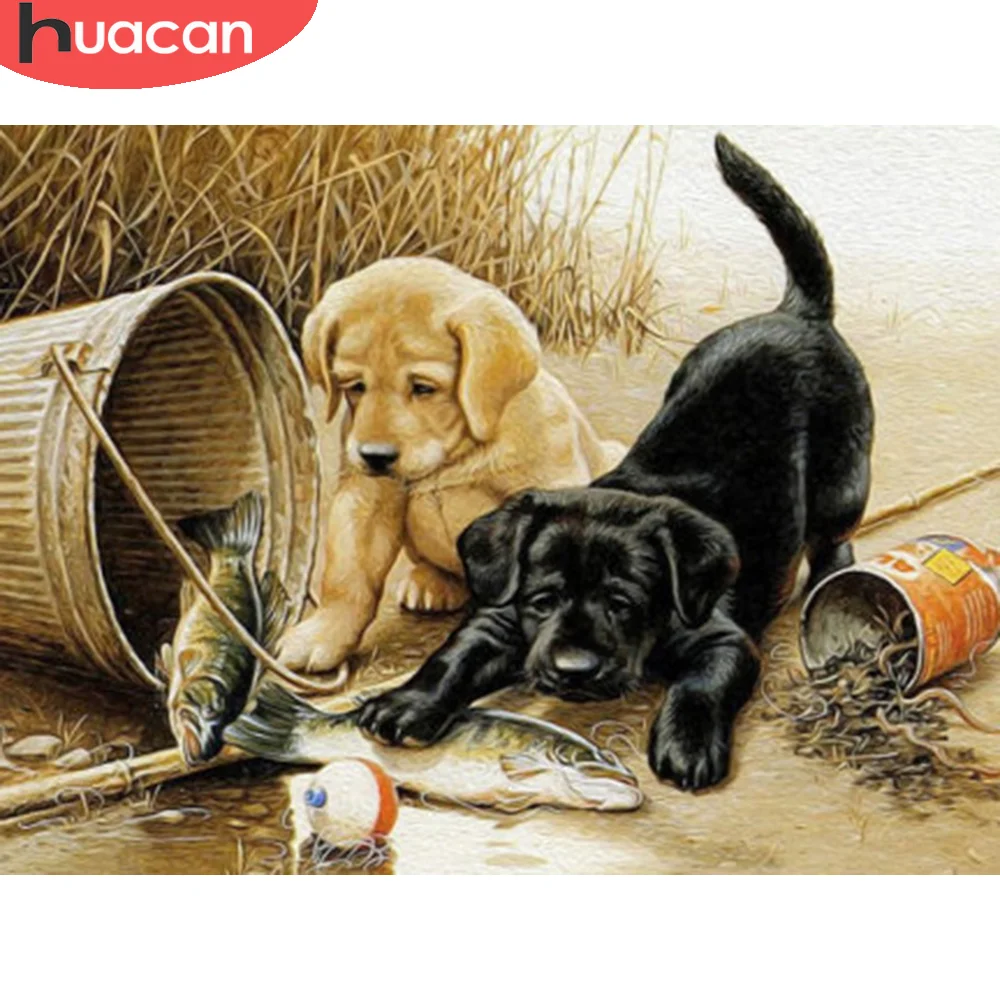 Алмазная мозаика HUACAN, вышивка с собакой, животное, полноразмернаякруглая алмазная живопись, рыбалка, Декор для дома