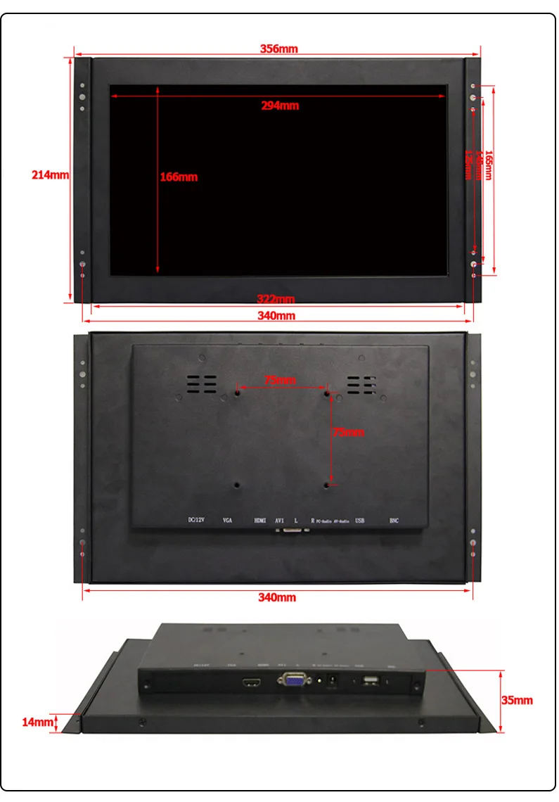 Широкоформатный сенсорный экран 13,3 дюйма HD 1920x108 0 с открытой рамкой, промышленный монитор с интерфейсом VGA HDMI