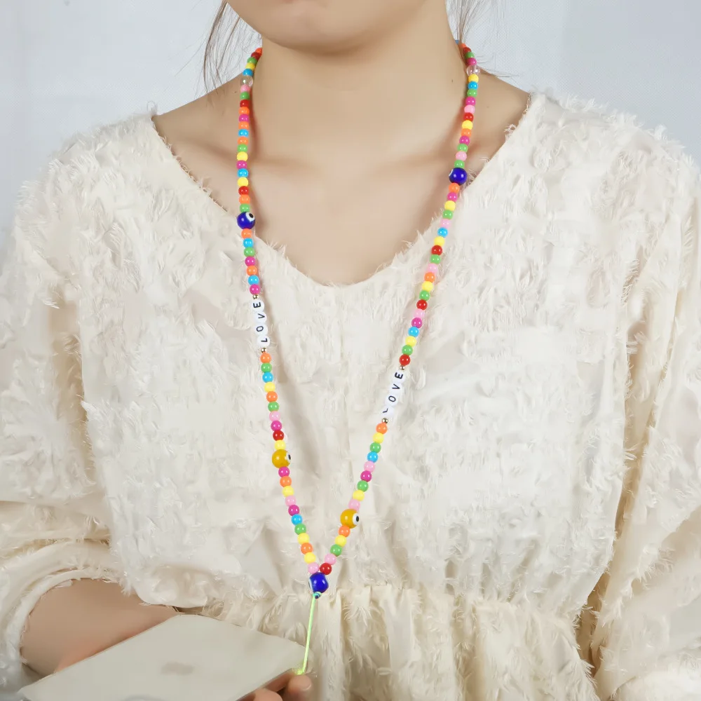 Очаровательные бусины для телефона, цепочки, подвески от сглаза для мобильного телефона, Глиняное ожерелье, бижутерия для телефона, Длинная цепочка на шею, шнурок