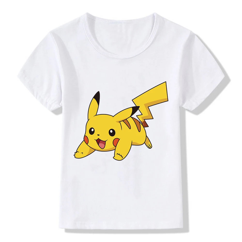 Футболка с коротким рукавом и мультипликационным принтом Пикачу, Детская Повседневная футболка в стиле Харадзюку, летняя новая одежда для маленьких девочек с покемоном и аниме