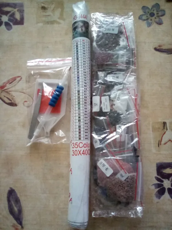Холст прибыл в неповрежденном пузырьковом конверте. Холст обернут вокруг пенопластовой трубки и ламинирован. Бриллианты находятся в маленьких отдельных пакетах с излишним, набор для установки прост, но завершен. Продавец рекомендует, потому что Доставка за 10 дней