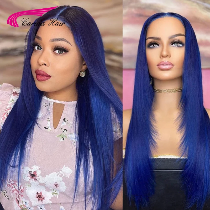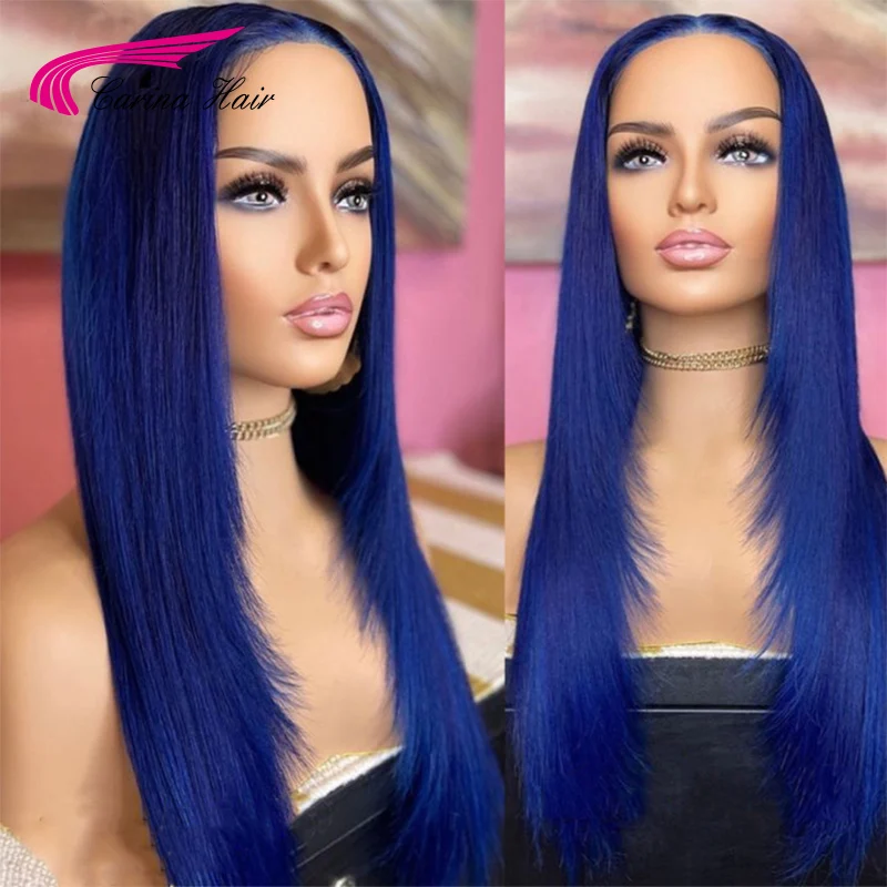 Синий цвет, волнистыепрямые 13X 4 парики на сетке спереди, бразильс...
