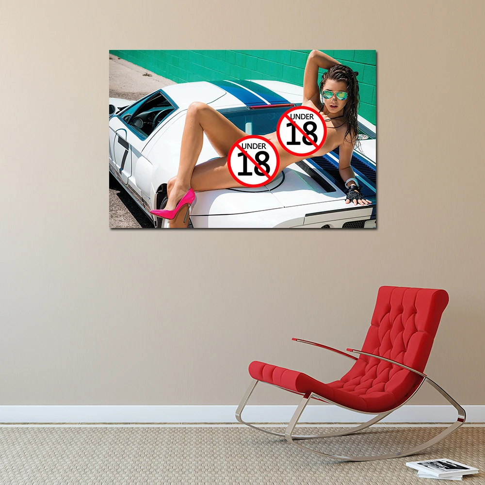 Настенный поп-плакат с рисунком, Привлекательная модель автомобиля, горизонтальная картина для декора гостиной, спальни