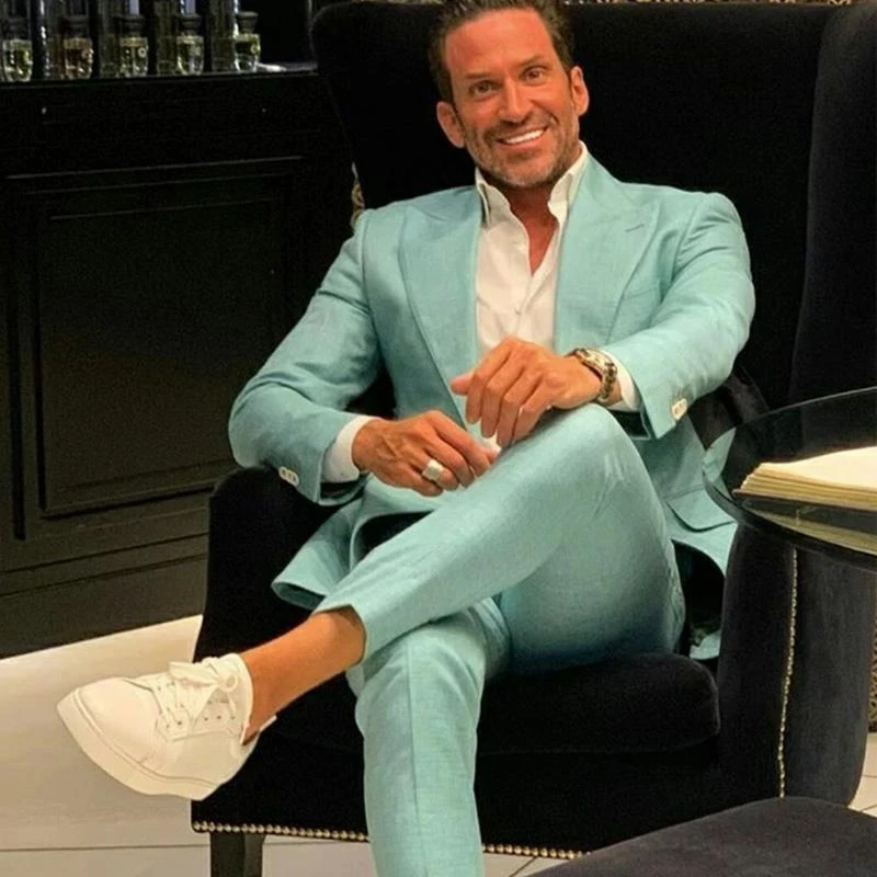 Смокинг мужской свадебный мятно-зеленый с двумя пуговицами, пиджак и брюки
