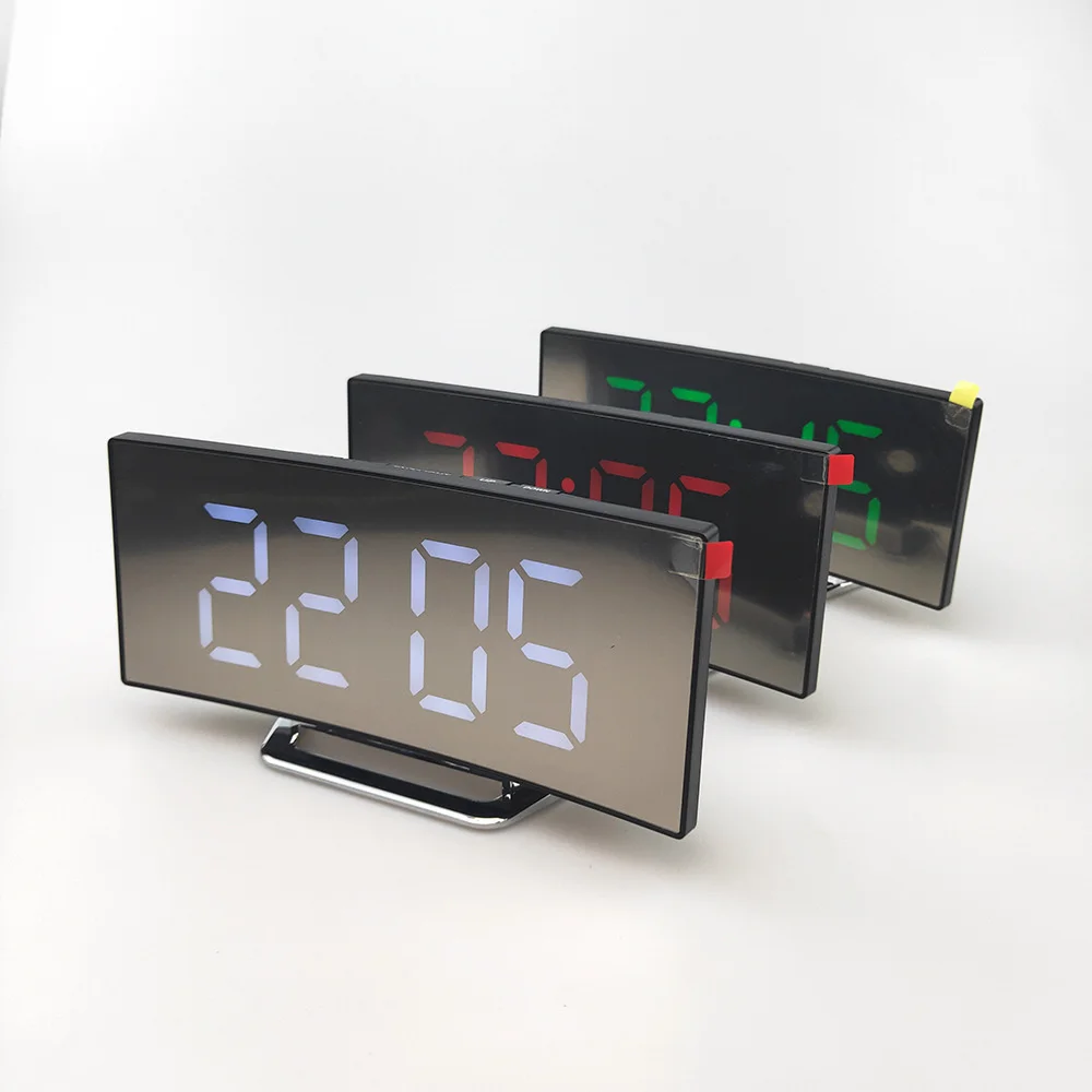 Зеленый светодиодный дисплей с 2 слотами: цифровой будильник со специальным изогнутым светодиодный sn, вы можете четко видеть время под разными углами. Светодиодный светильник автоматически садится в ночной режим и светильник включается в течение дня.