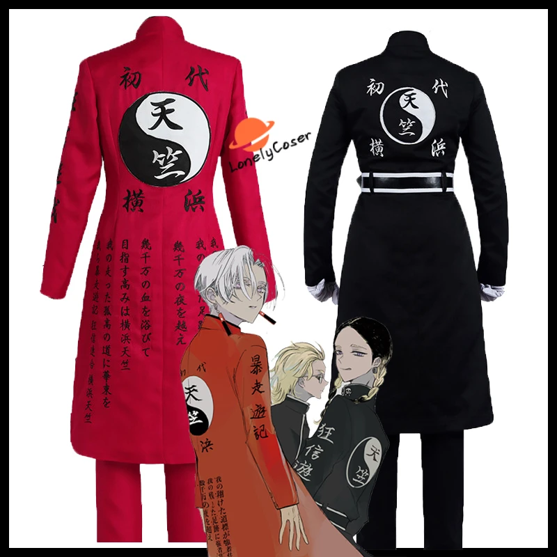 Костюм для косплея аниме Токио Мстители Курокава изана Риндо хайтани, Тренч с вышивкой и принтом, для Хэллоуина, красный, черный