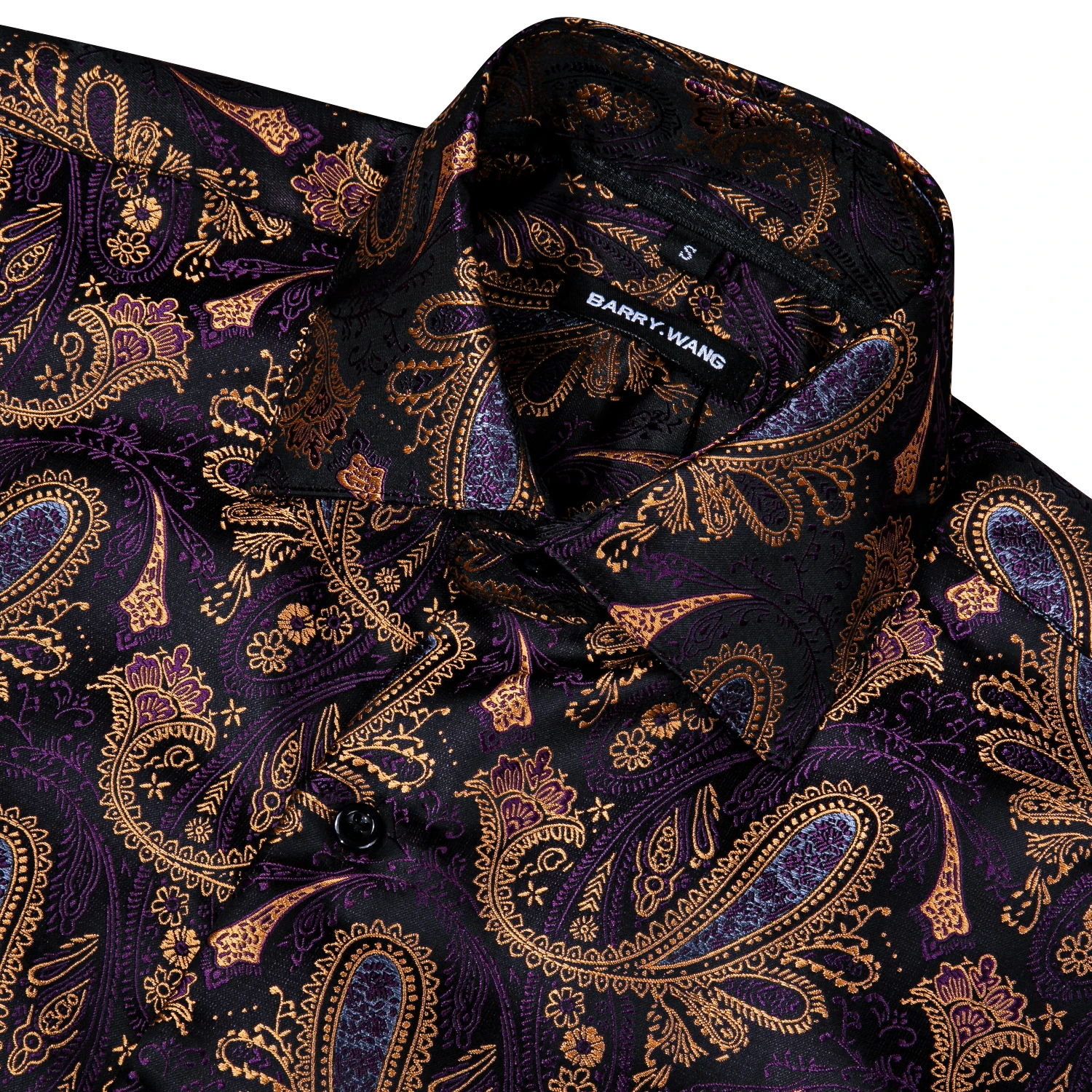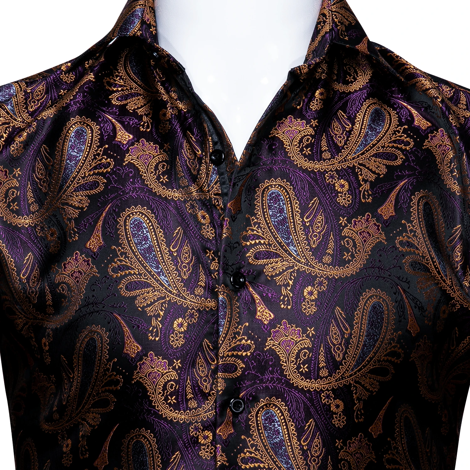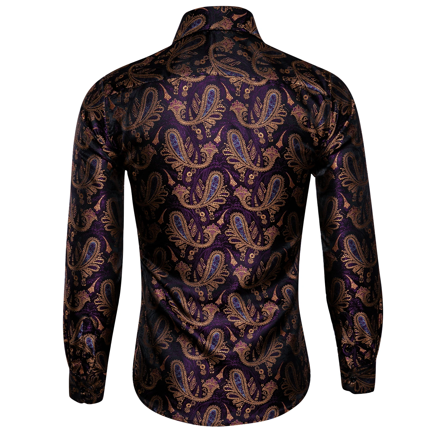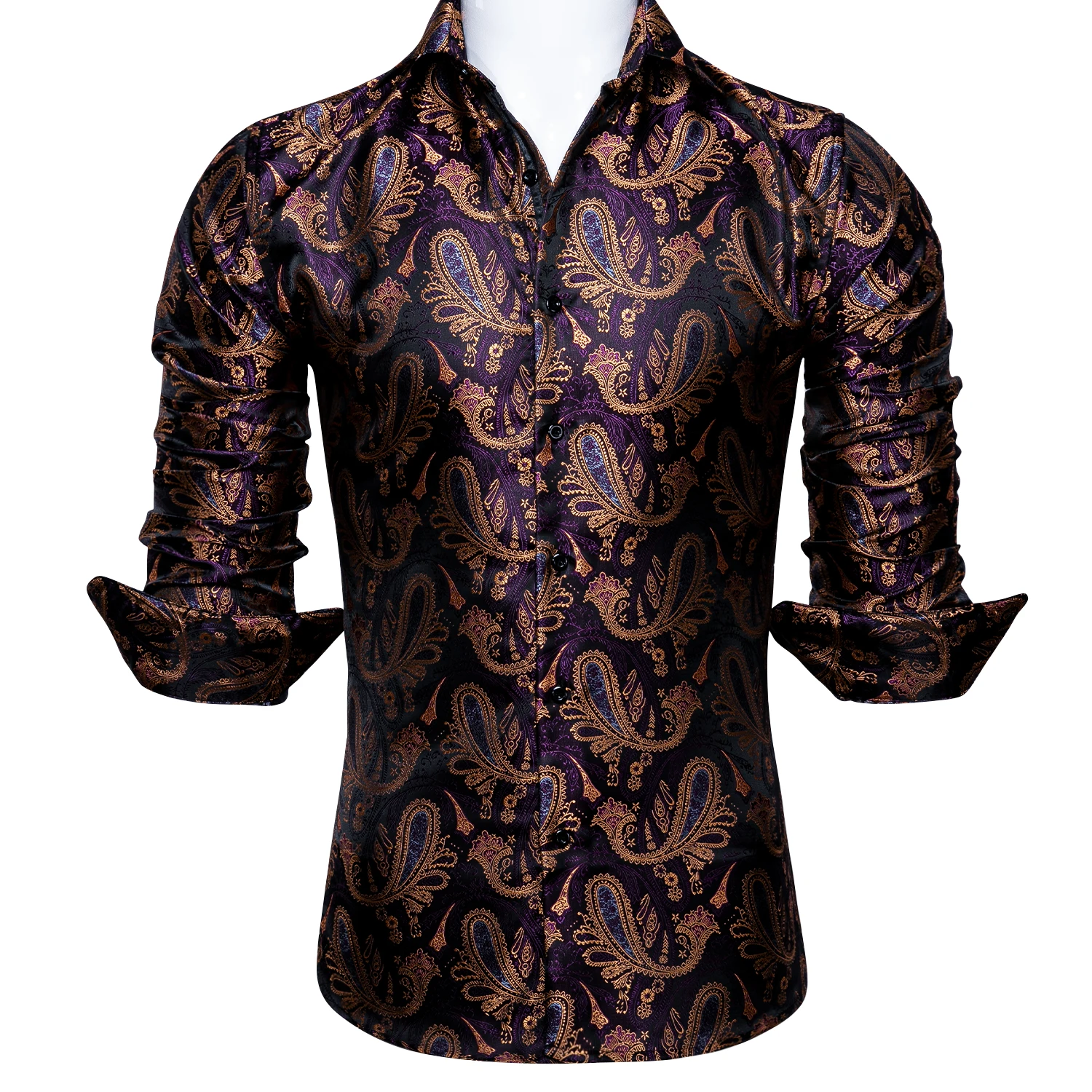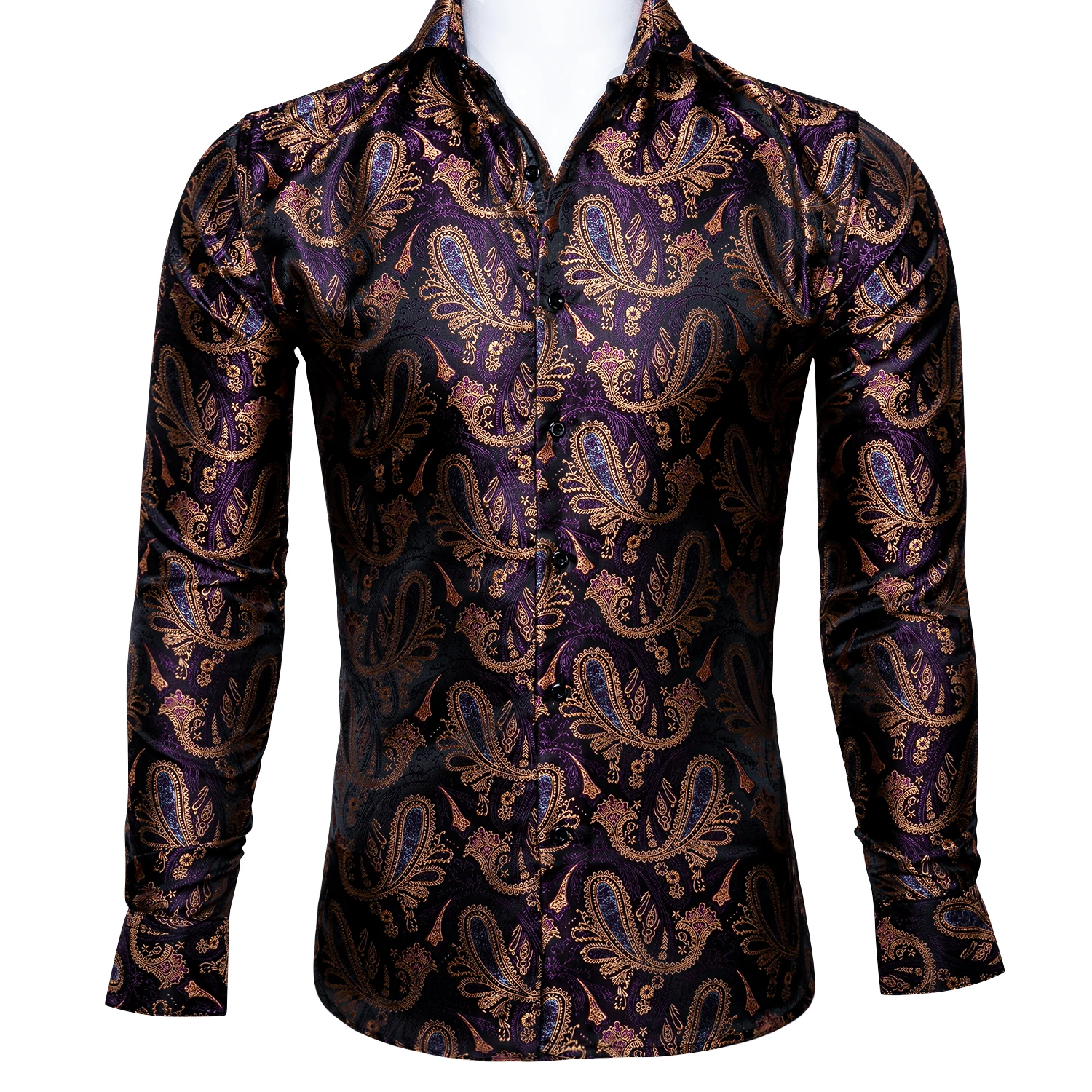 Роскошная фиолетовая шелковая рубашка с Пейсли Barry.Wang, мужская повседневная рубашка с длинным рукавом и цветочным принтом для мужчин, дизайнерская подходящая Классическая рубашка, BCY-0027