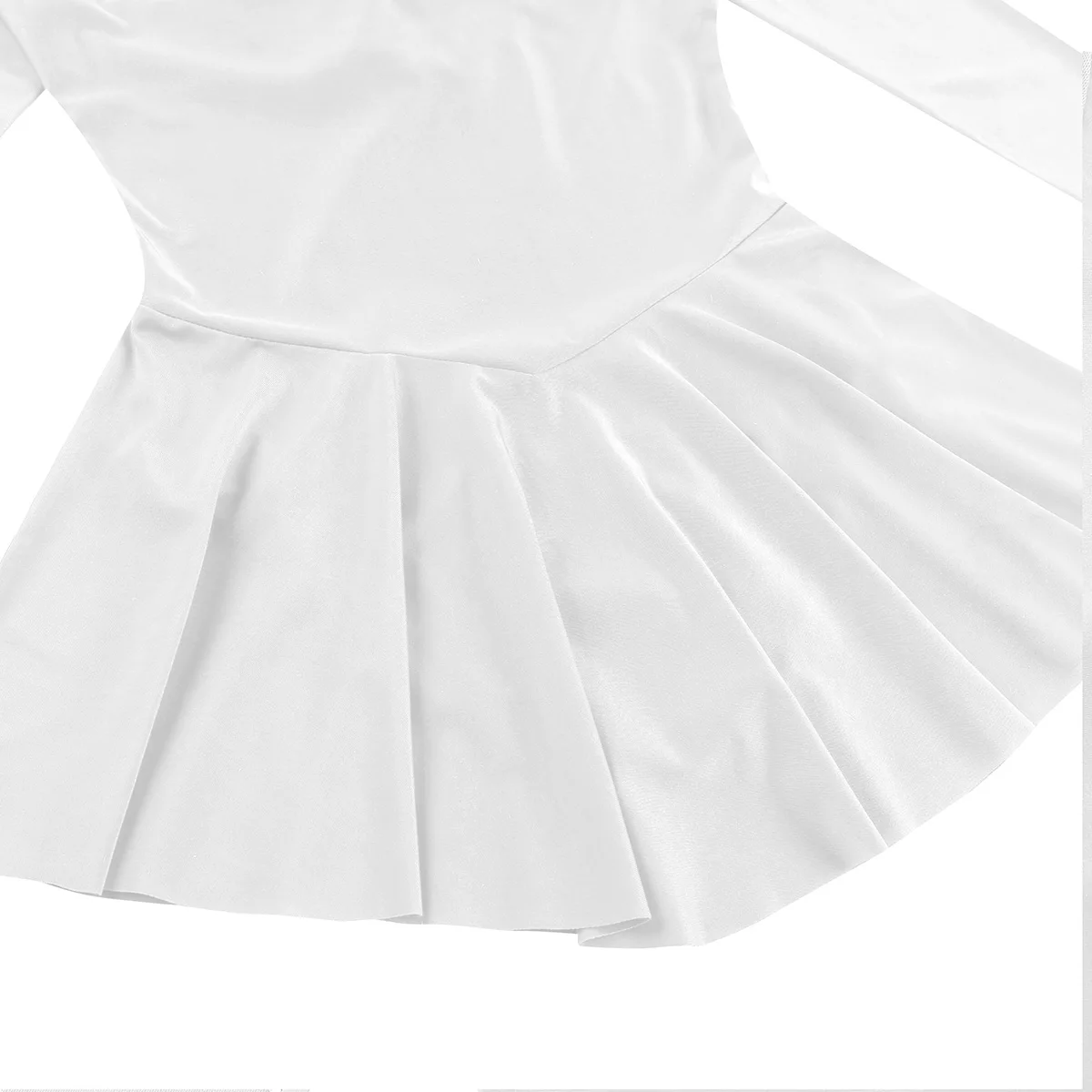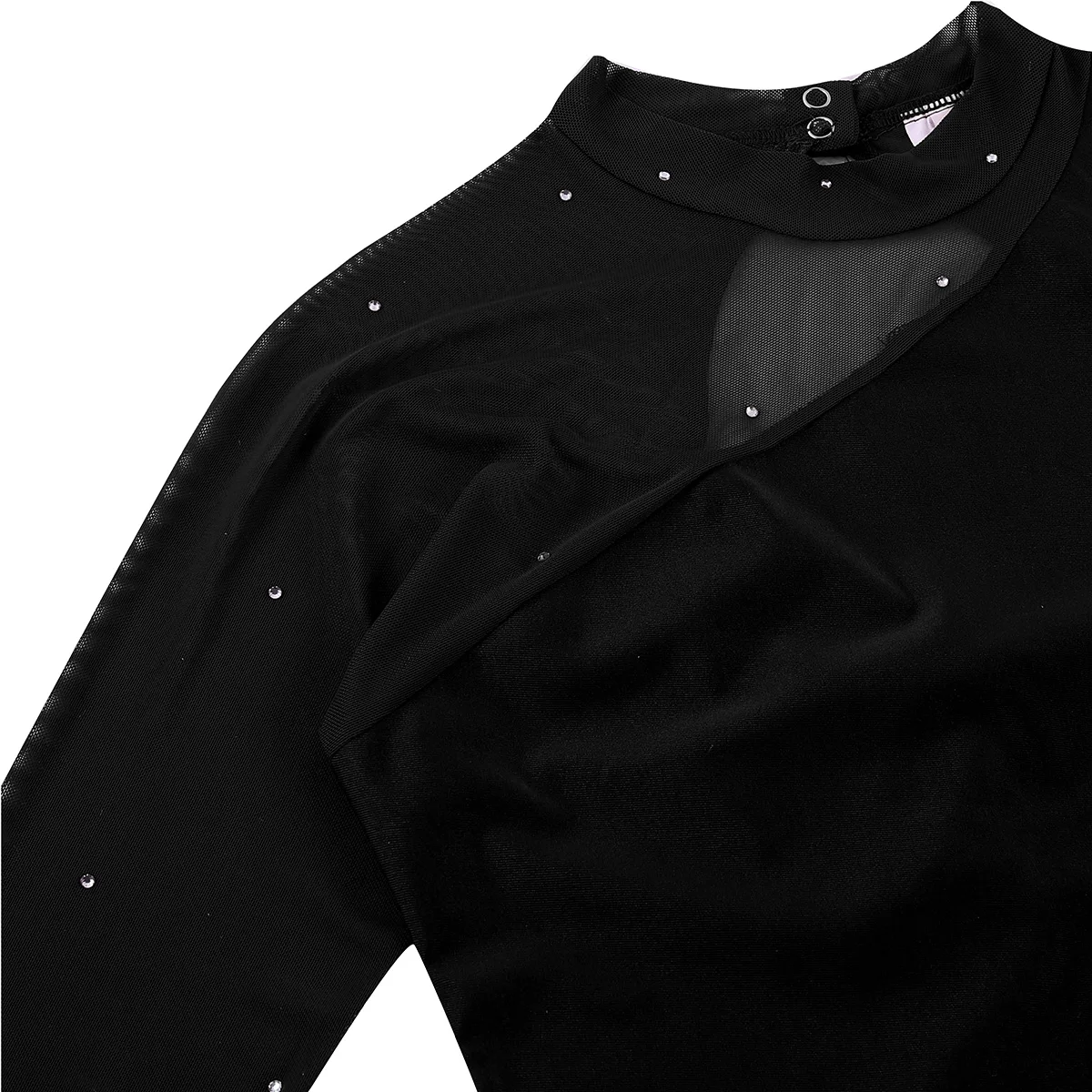 Женское платье для танцев с длинными рукавами для взрослыхЗакругленный вырез, один рукав из сетки, украшенный кристаллами, бант на спине.Хорошая эластичная ткань, очень мягкая и гладкая, дышащая, удобная в носке.Подходит для занятий танцами, гимнастическое упражнение, соревнований и выступлений и т. д.Пожалуйста, внимательно ознакомьтесь с таблицей размеров, приведенной ниже, прежде чем разместить заказ, ручная или машинная стирка.