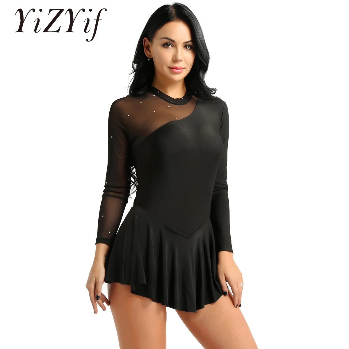 # Размеры: S-XL Для женщин для взрослых с длинным рукавом с лямкой через шею, с низким вырезом на спине Катание на коньках; Платье для бальных танцев; Платье, гимнастический купальник
