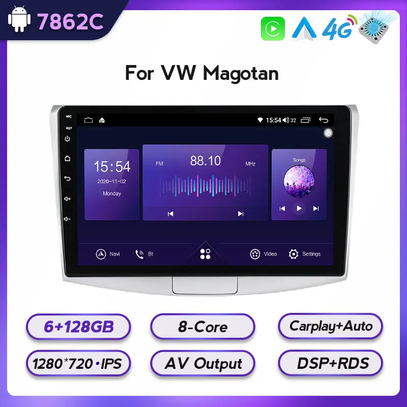 NaviFly Android 11 6 + 128G GPS-навигация для Volkswagen VW Skoda R...