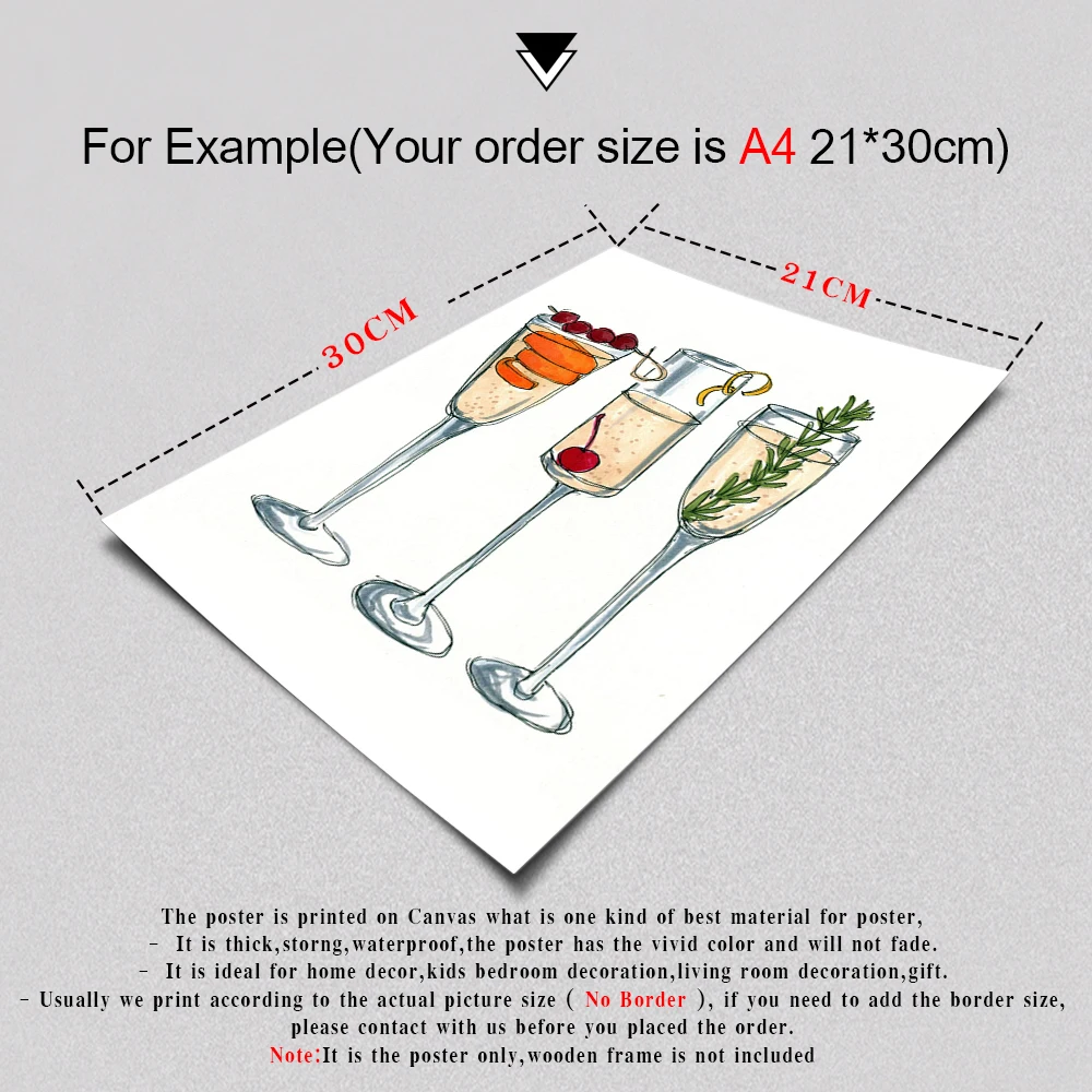 Постеры и принты для кухни, печать на холсте шампанского, коктейля,...