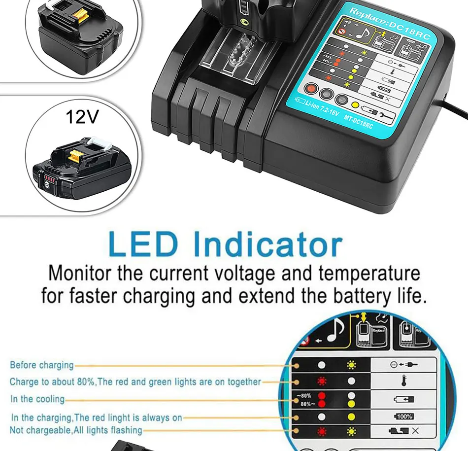 Зарядное устройство для литий-ионных аккумуляторов DC18RCT для Maki...