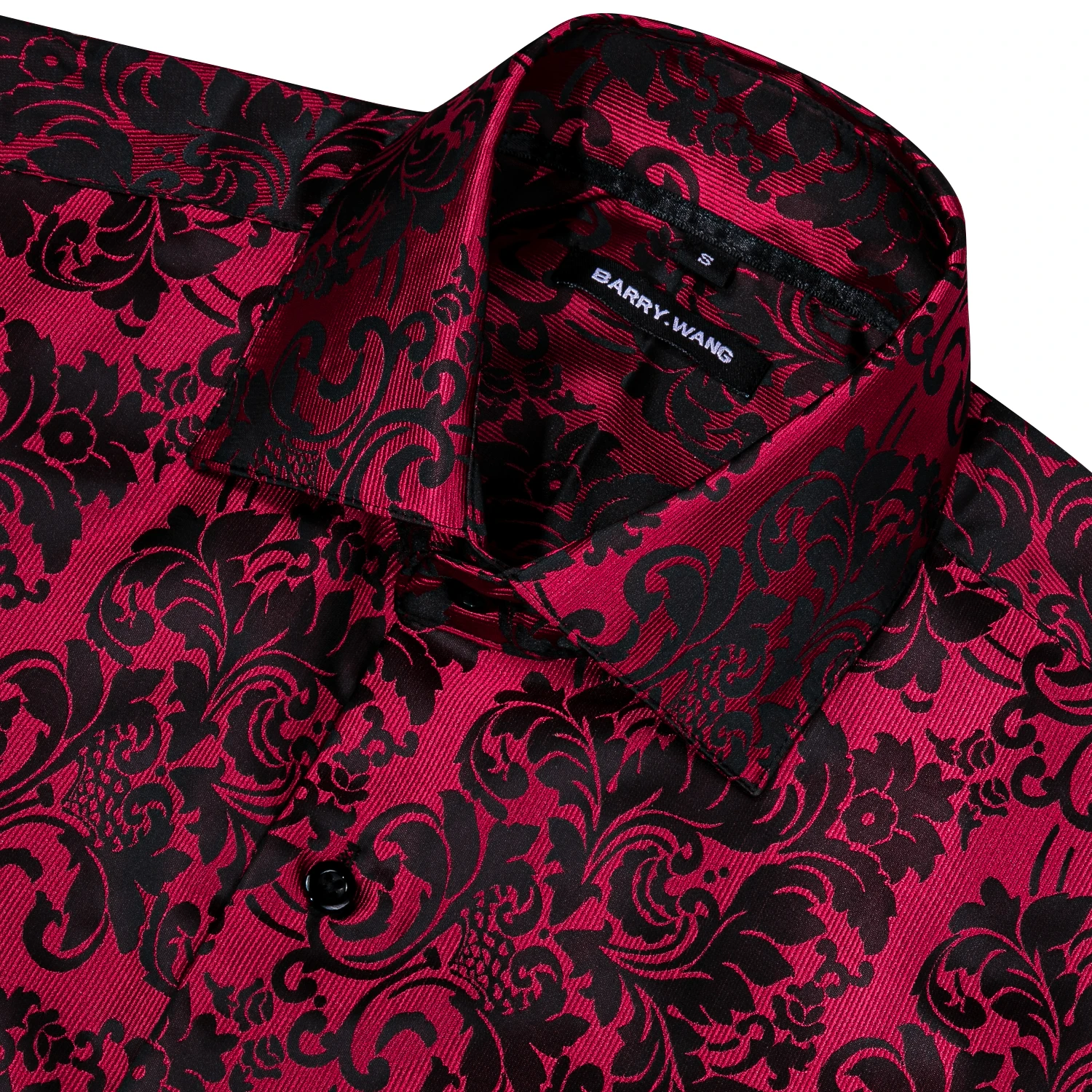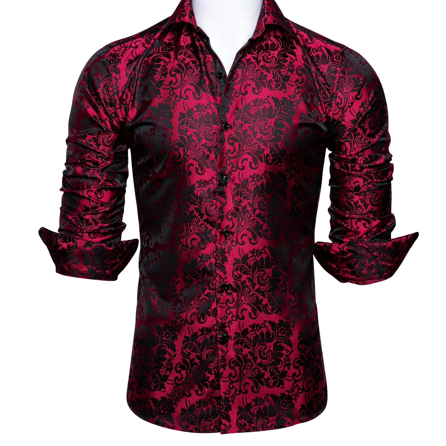 Barry.Wang Роскошные красные шелковые рубашки с цветочным принтом Мужские повседневные рубашки с длинным рукавом с цветочным принтом для мужчин дизайнерская приталенная рубашка BCY-0028