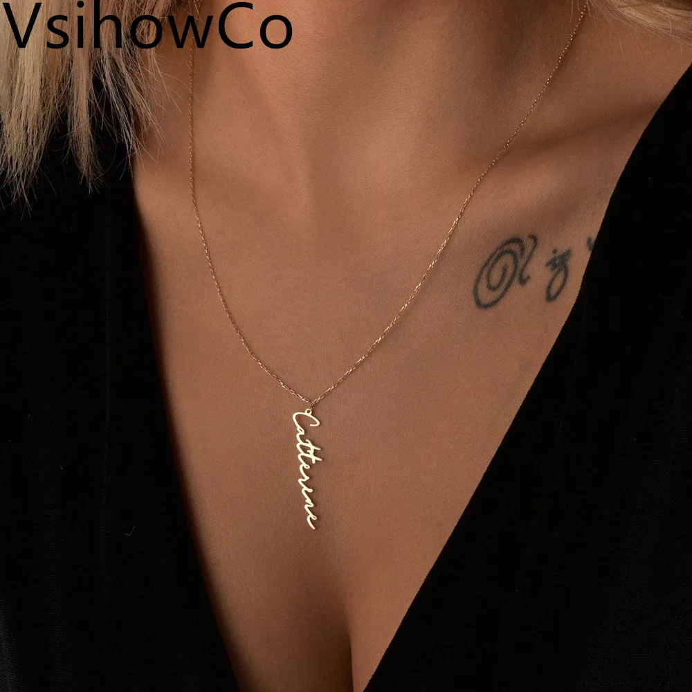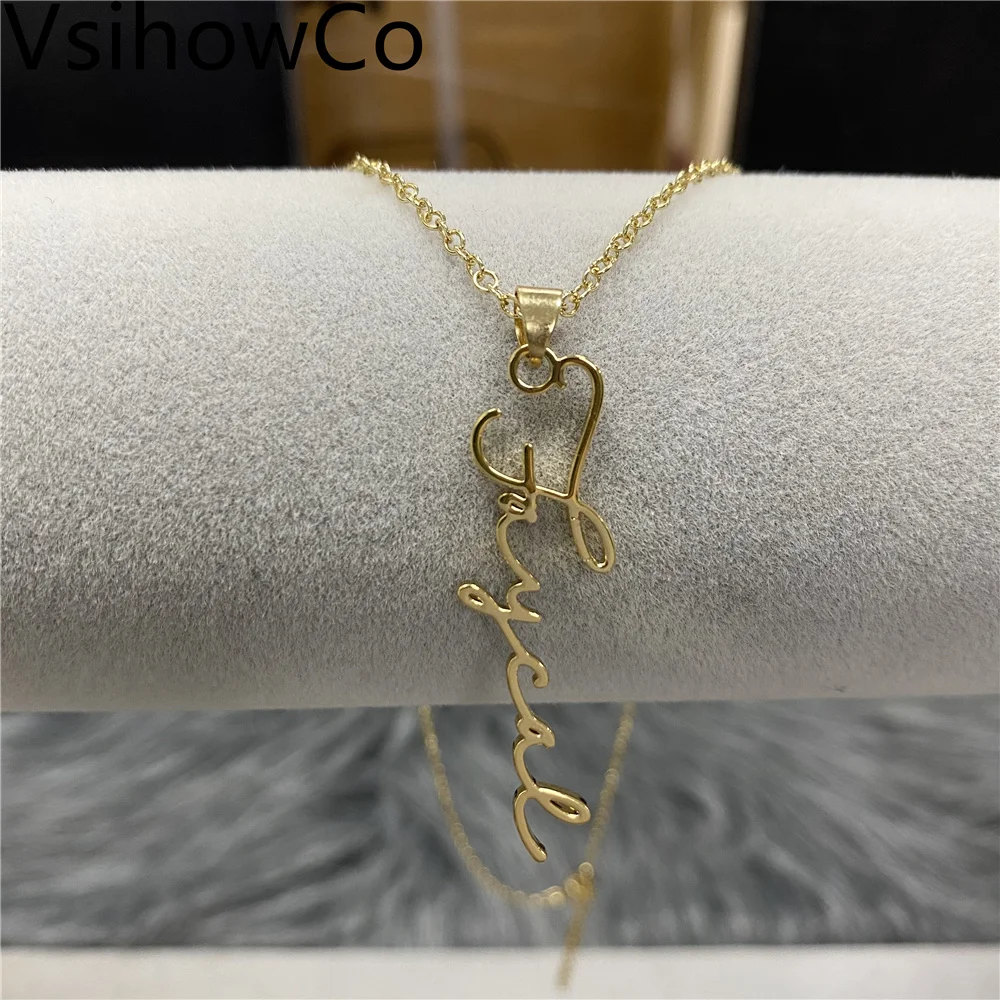 Женское Ожерелье из нержавеющей стали VishowCo, Золотистое Ожерелье с именем под заказ