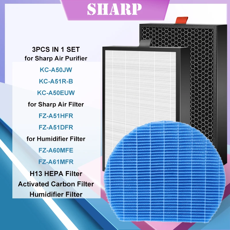 3 PCS очиститель воздуха Sharp KC-A50JW KC-A51R-B KC-A50EUW фильтр-увлажнитель HEPA Filter FZ-A51HFR FZ-A51DFR