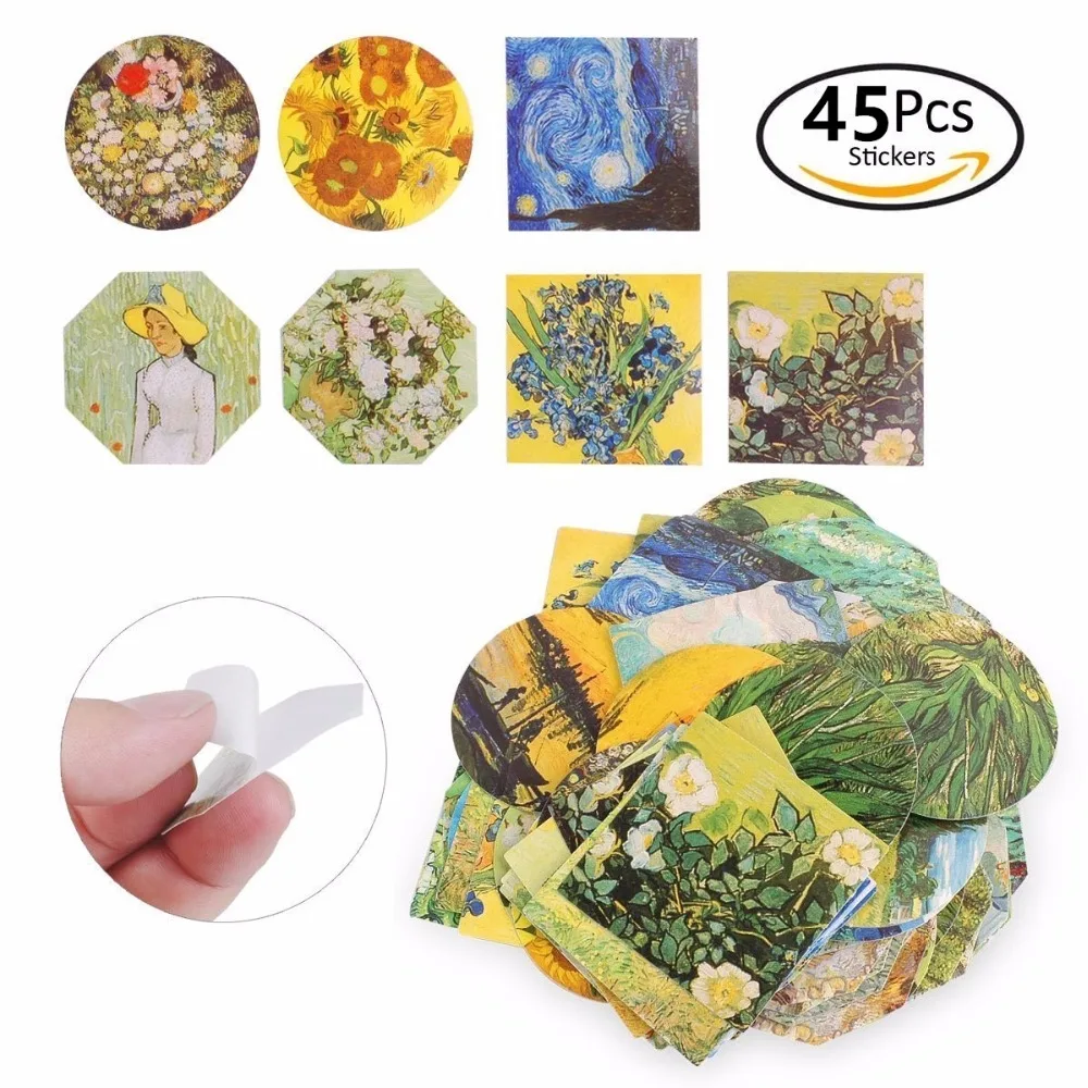 45 шт.лот милые картины маслом Ван Гога Мини бумажные наклейки укра...