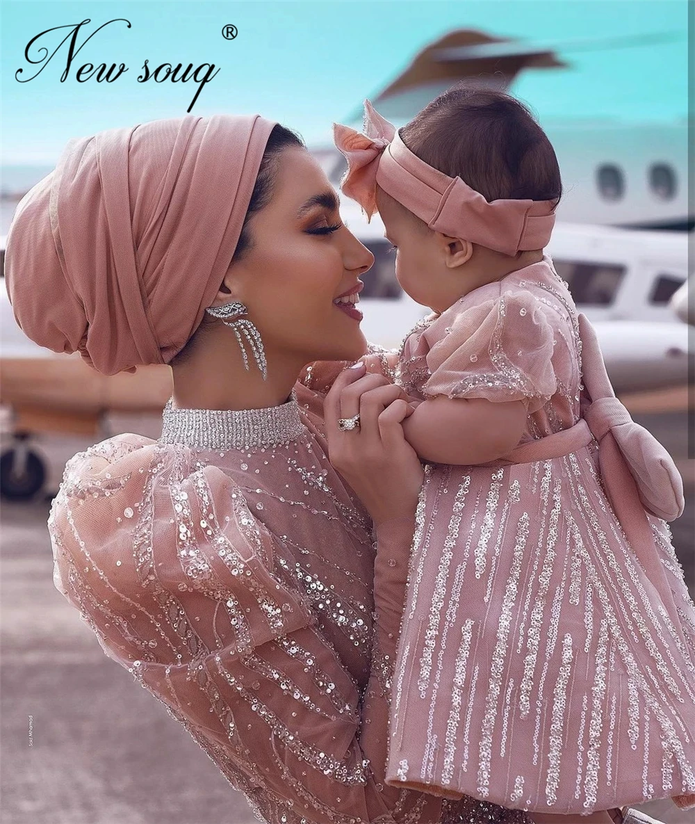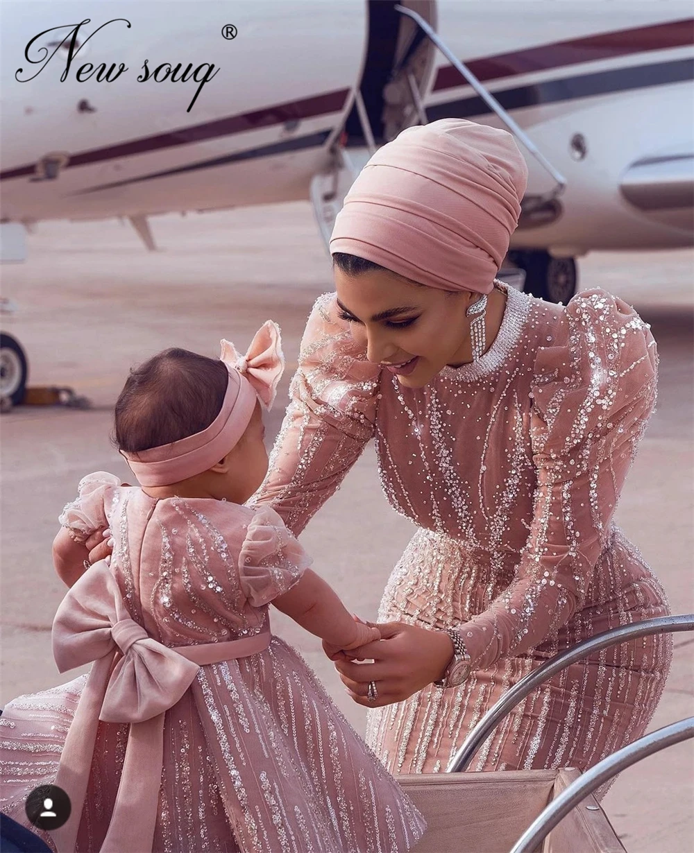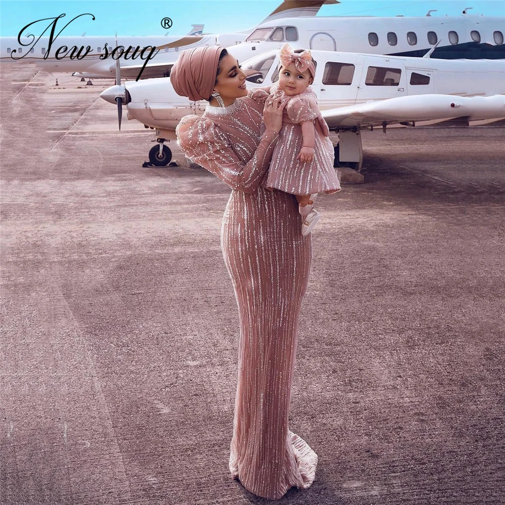 Мусульманские Вечерние платья с бисером, платье для матери и дочери, платья Дубая для выпускного вечера для женщин, 2021, вечерние платья на заказ, свадебные платья