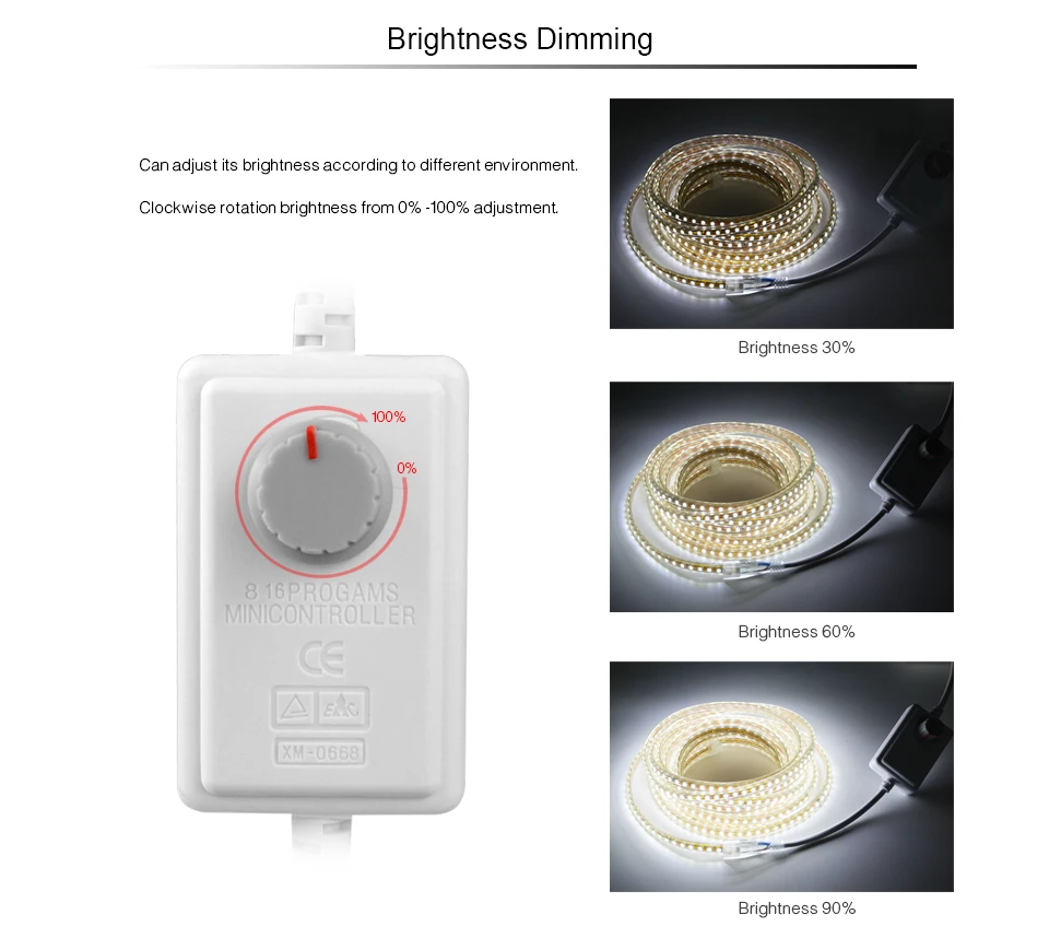 Светодиодная ленсветильник, высокая яркость, 220 В, 2835 светодиодовм, водонепроницаемая, гибкая, с диммером, для дома