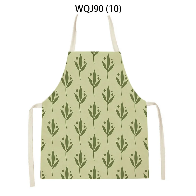 Фартуки кухонные из хлопка и льна, с рисунком зеленых листьев, 53 х...