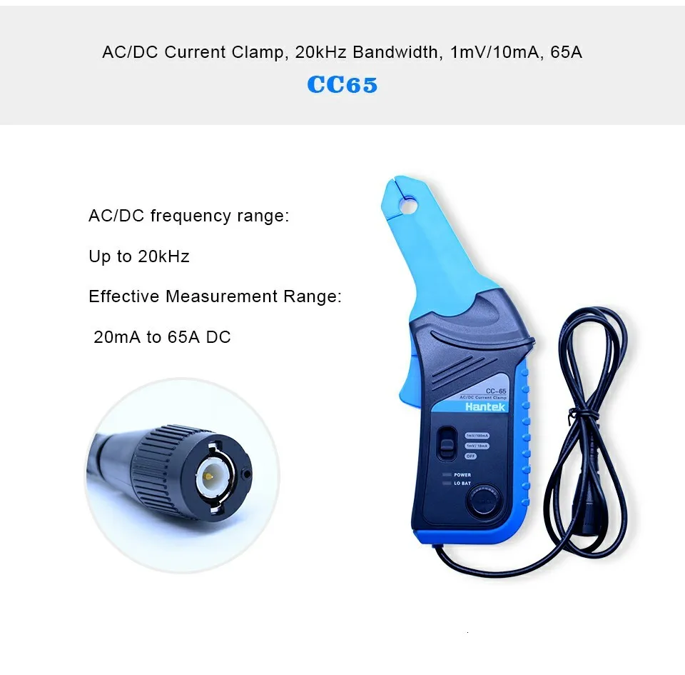 Осциллограф Hantek CC65 CC650, датчик переменногопостоянного тока с зажимом, пропускная способность 20 кГц400 Гц, 1mV10mA 65A650A, с разъемом BNC, совместим с 1008C