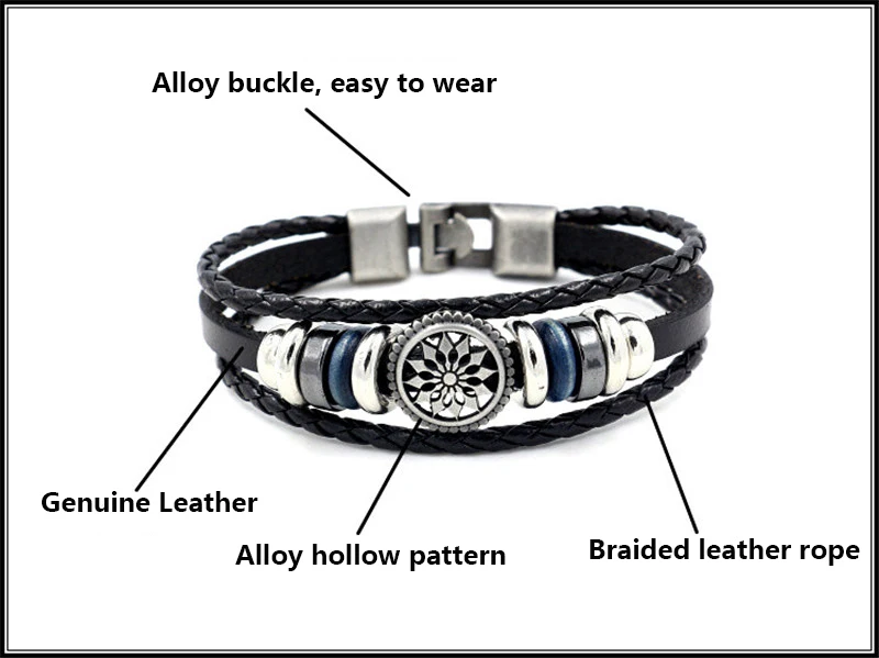 12 созвездий Зодиака Знаки зодиака Черная Плетеная кожа Близнецы Р...