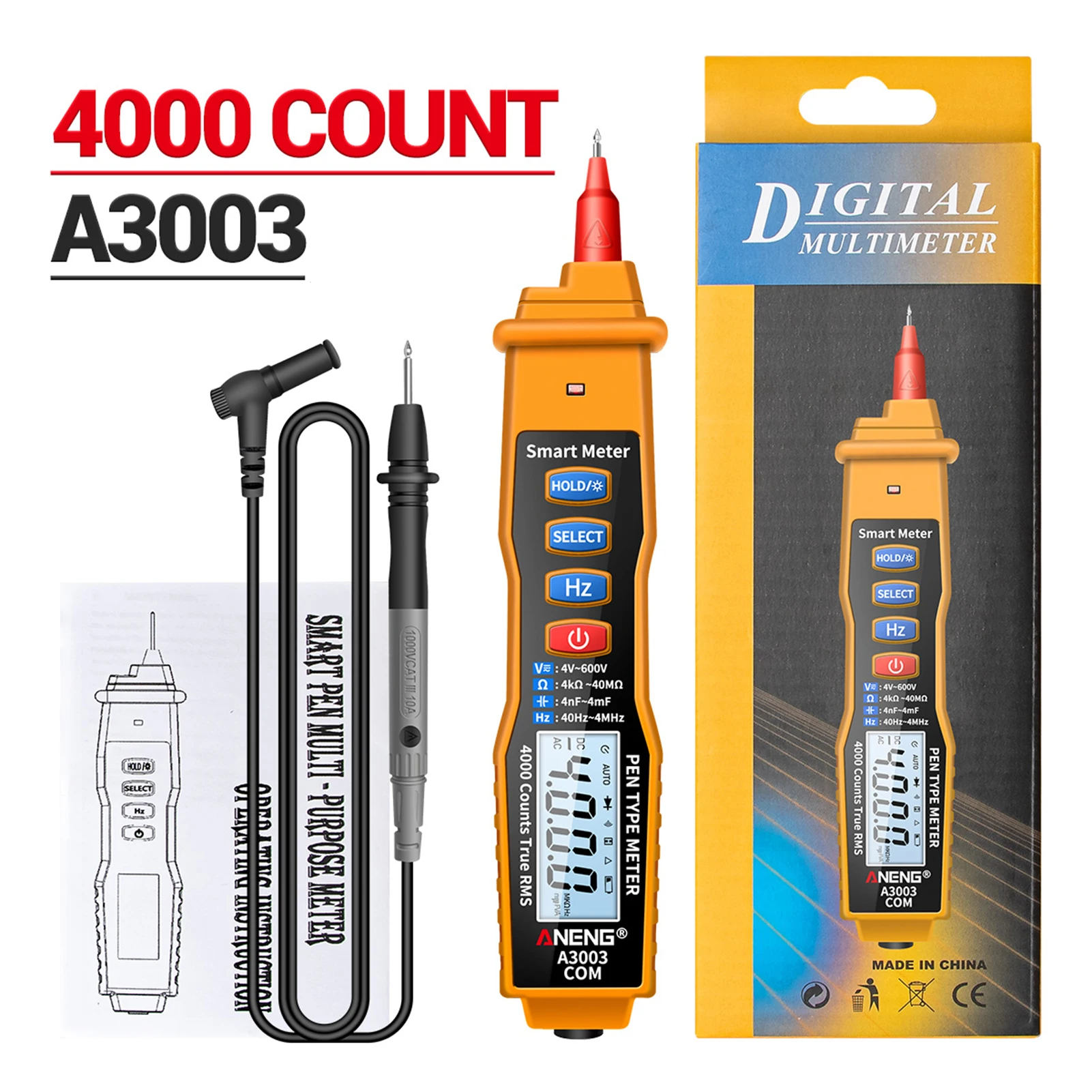 ANENG A3003 4000 отсчетов Ручка Тип Цифровой мультиметр с NCV, AC/DC вольтметр, Омметр, сопротивление, емкость, частота и Тест линии, цифровой мультиметр-ручка также с функцией EF и функцией включения-выключения Buzzer Detection поддерживает Удержание данных. Большой ЖК-экран с поддержкой функции автоматического отключения для энергосбережения; Buit-in flash светильник + звуковой сигнал и светильник, более удобный тест и чтение.Особенности:Многофункциональный мультиметр-этот цифровой мультиметр ручного типа может выполнять измерение напряжения переменного/постоянного тока 4 в-600 В, сопротивление от 4kΩ - 40MΩ, емкость, Частотный тест и обнаружение звукового сигнала ВКЛ-ВЫКЛ, обнаружение пожара и т. Д.Удобное использование -- с 4000 отсчетов большая Подсветка ЖК-экрана и функция фонарика, значение можно четко читать даже в темных местах. Функция удержания данных, вы можете сохранить данные одним щелчком мыши, удобно для чтения данных.Бесконтактное измерение-цифровой мультиметр поддерживает Бесконтактное Обнаружение напряжения NCV и может различать нулевую линию и пожарный провод, чтобы избежать риска поражения электрическим током. Безопасный и надежный.Автоматическое выключение и звуковая сигнализация-мультиметр ручки имеет функцию автоматического отключения, которая автоматически отключится, если нет операции для минут, низкое энергопотребление. Звуковой сигнал + светильник облегчает измерение.Легко носить с собой-компактный дизайн ручки для удобного использования одной рукой, легко носить с собой и работать. Он очень подходит для дома, школы, лаборатории, фабрики и других применений.Спецификация:Бренд: ANENGМодель: A3003Максимальный дисплей: 4000 единицЦвет: желтый/черный (опционально)Материал: АБС + латунь + ПВХИсточник питания: 2 * AAA (не входит в комплект)Сигнализация: звуковой + светильникАвтоматическое выключение: ДаЖК-экран: с подсветкойХранение данных: ДаФункция EF: ДаФункция сохранения даты: ДаФункция зуммера: Да