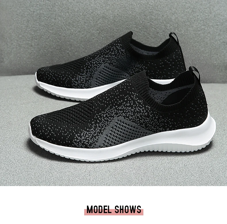 Кроссовки женские без шнуровки, прогулочная обувь, модные повседневные легкие спортивные туфли, плетеная сетчатая обувь на плоской подошве для бега