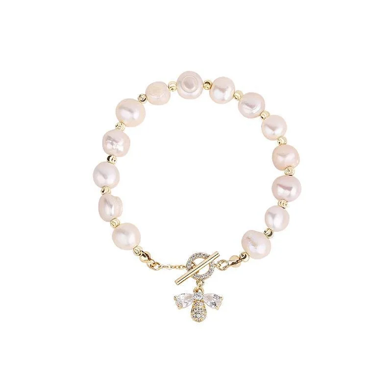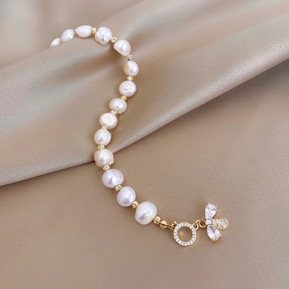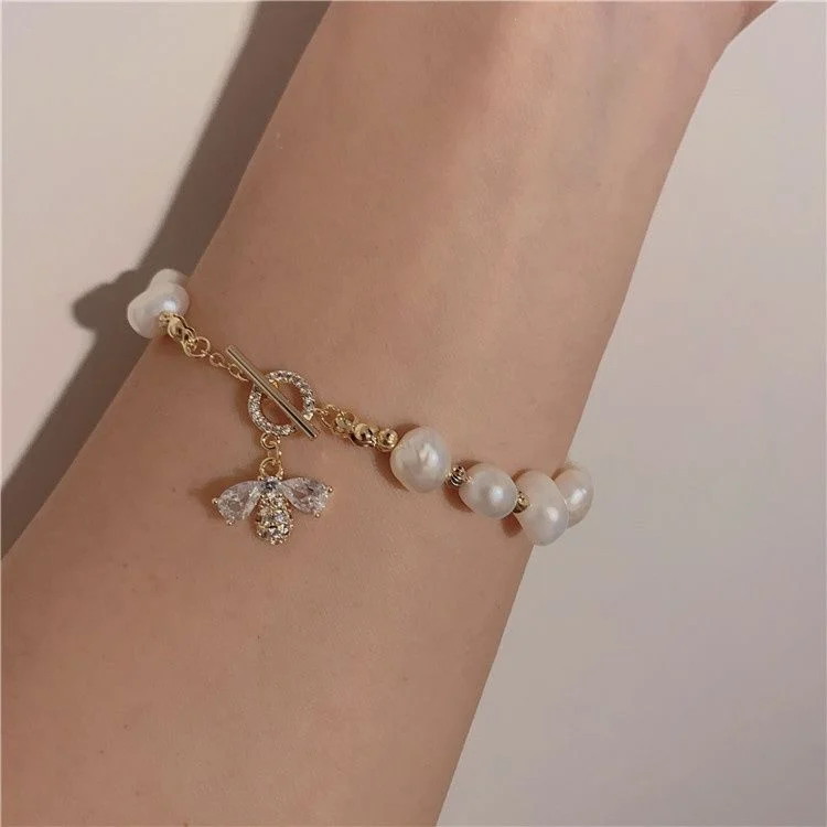 2021 элегантный браслет в стиле барокко из натурального жемчуга для женщин роскошный браслет с подвеской в виде пчелы из циркония модные милые ювелирные изделия для девушек