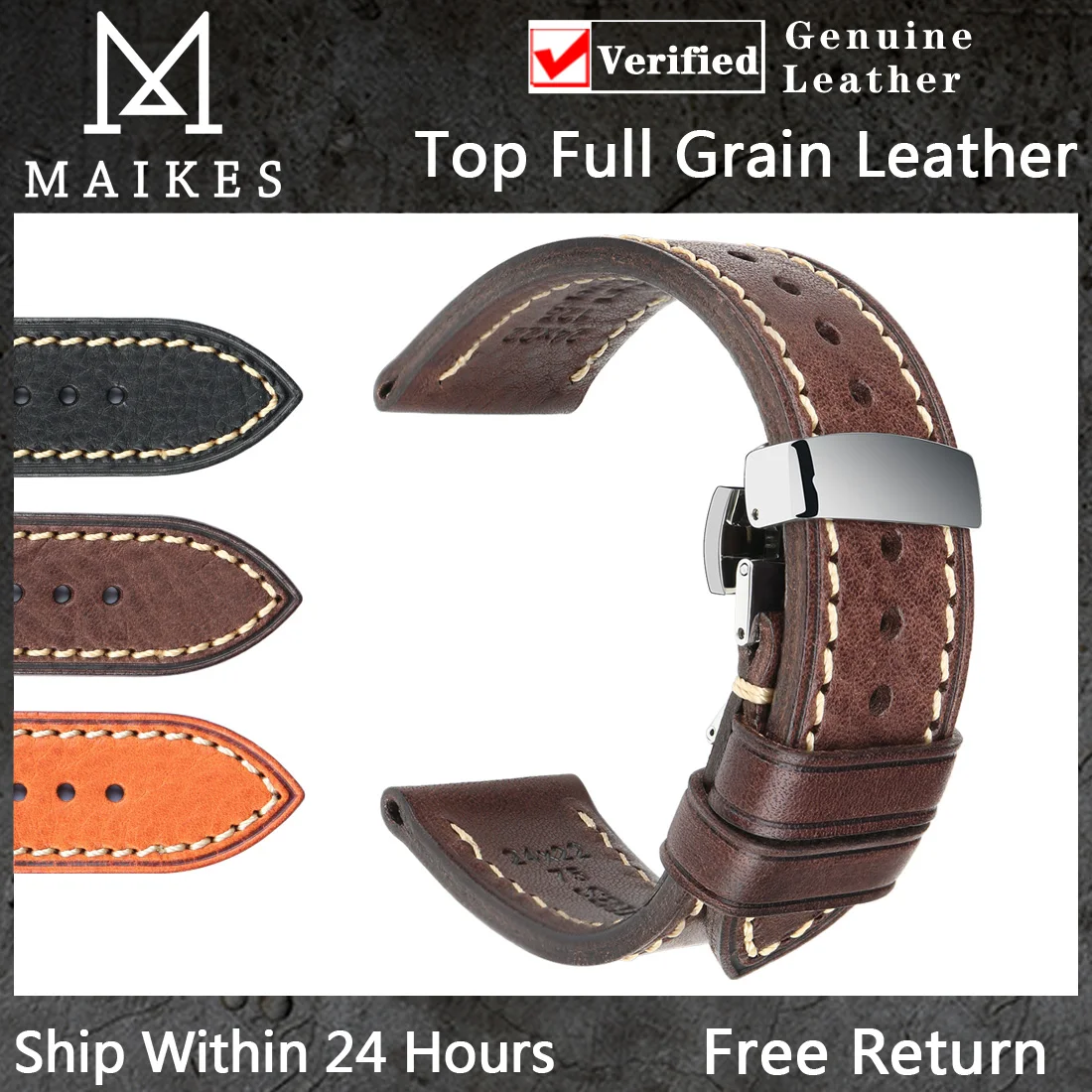 Кожаный ремешок для часов MAIKES, 20 мм, 22 мм, 24 мм, ручной работ...