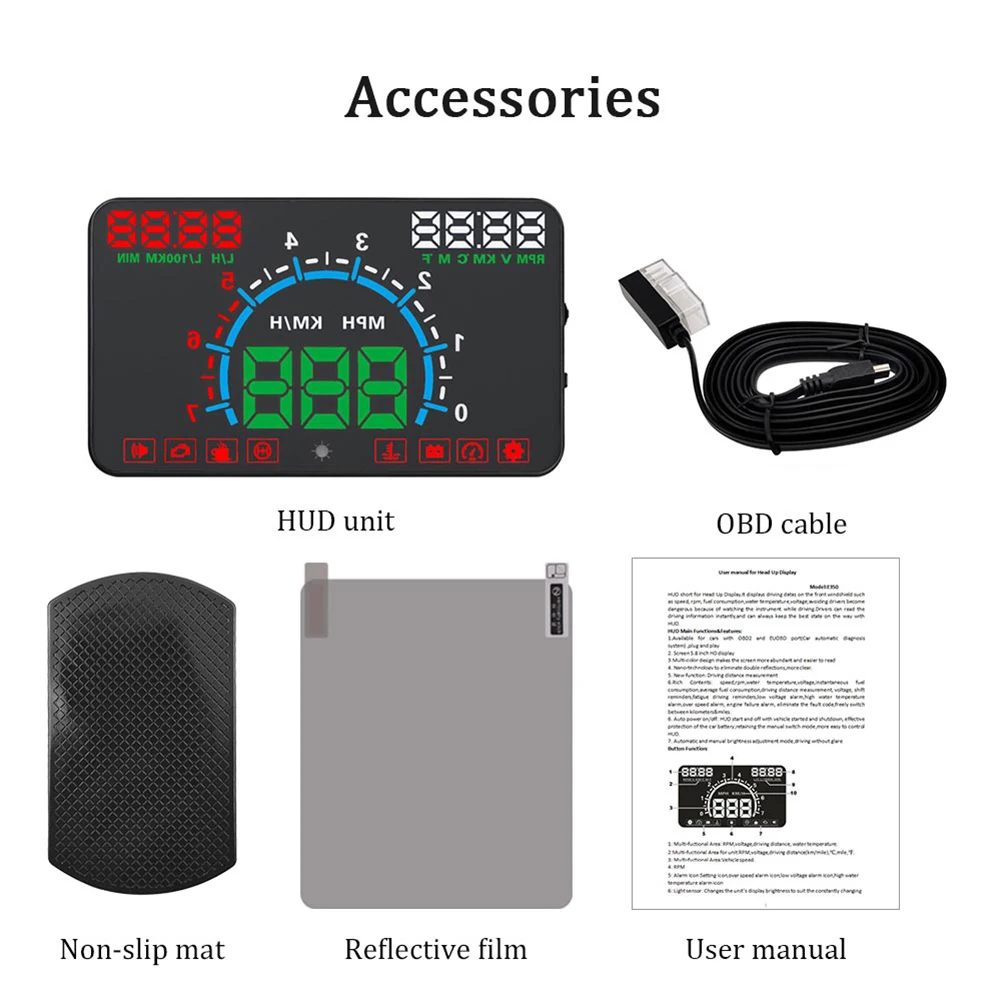 Дисплей на лобовое стекло E350 5,8 дюйма для Chrysler 2005 + (США) Предупреждение о превышении скорости, проектор на лобовое стекло, система сигнализации OBD2, HUD, автотюнинг